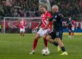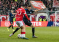 Die nächste Aktion saß dann aber: Wieder war es der starke Biankadi, der den perfekten Moment fand, um Erik Engelhardt zu bedienen. Der Torjäger blieb aus spitzem Winkel eiskalt und vollendete in der 11. Minute zur verdienten 1:0-Führung. Das hohe, konsequente Pressing der Lausitzer zahlte sich damit früh aus. Auch nach dem Führungstreffer blieb Cottbus das klar bessere Team. In der 23. Minute zeigte der FCE den vielleicht schönsten Spielzug der Halbzeit: Michelbrink hob den Ball gefühlvoll auf Cigerci, der per Kopf ins Zentrum ablegte. Borgmann nahm den Ball volley, verfehlte das Tor jedoch knapp. Duisburg tat sich weiterhin schwer, überhaupt in gefährliche Räume zu kommen. Die Cottbuser Hintermannschaft um Campulka, Pelivan, Guwara und Straudi verteidigte aufmerksam, gewann die entscheidenden Duelle und ließ kaum strukturierten MSV-Aufbau zu. Erst in der 36. Minute kamen die Gäste zu einem Umschaltmoment, doch auch dieser wurde konsequent wegverteidigt, die anschließende Ecke verpuffte.