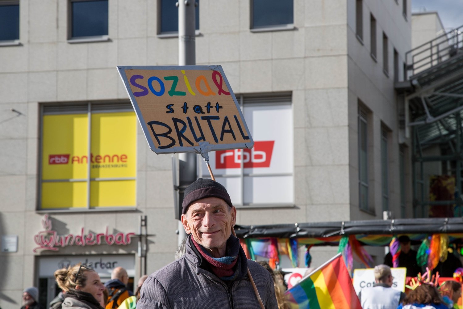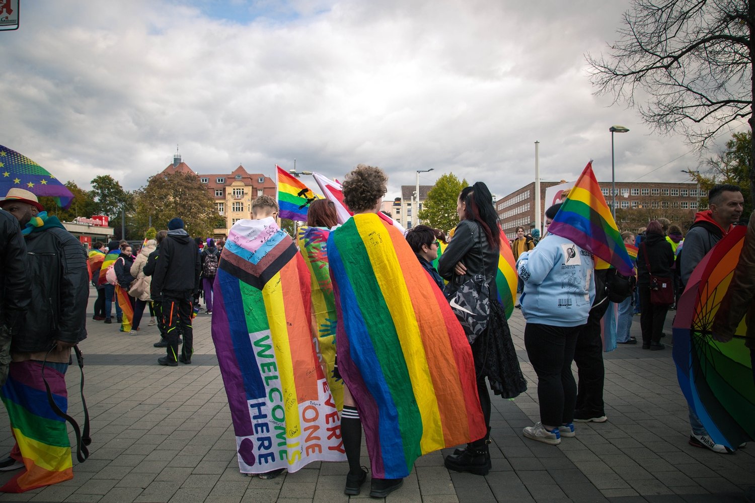 Den Abschluss einer ganzen Aktionswoche bildet auch in diesem Jahr wieder die CSD-Demo. Unter dem Motto „Vereint in Frieden und Vielfalt“ zogen grob geschätzt 800 Menschen durch die Cottbuser Innenstadt.