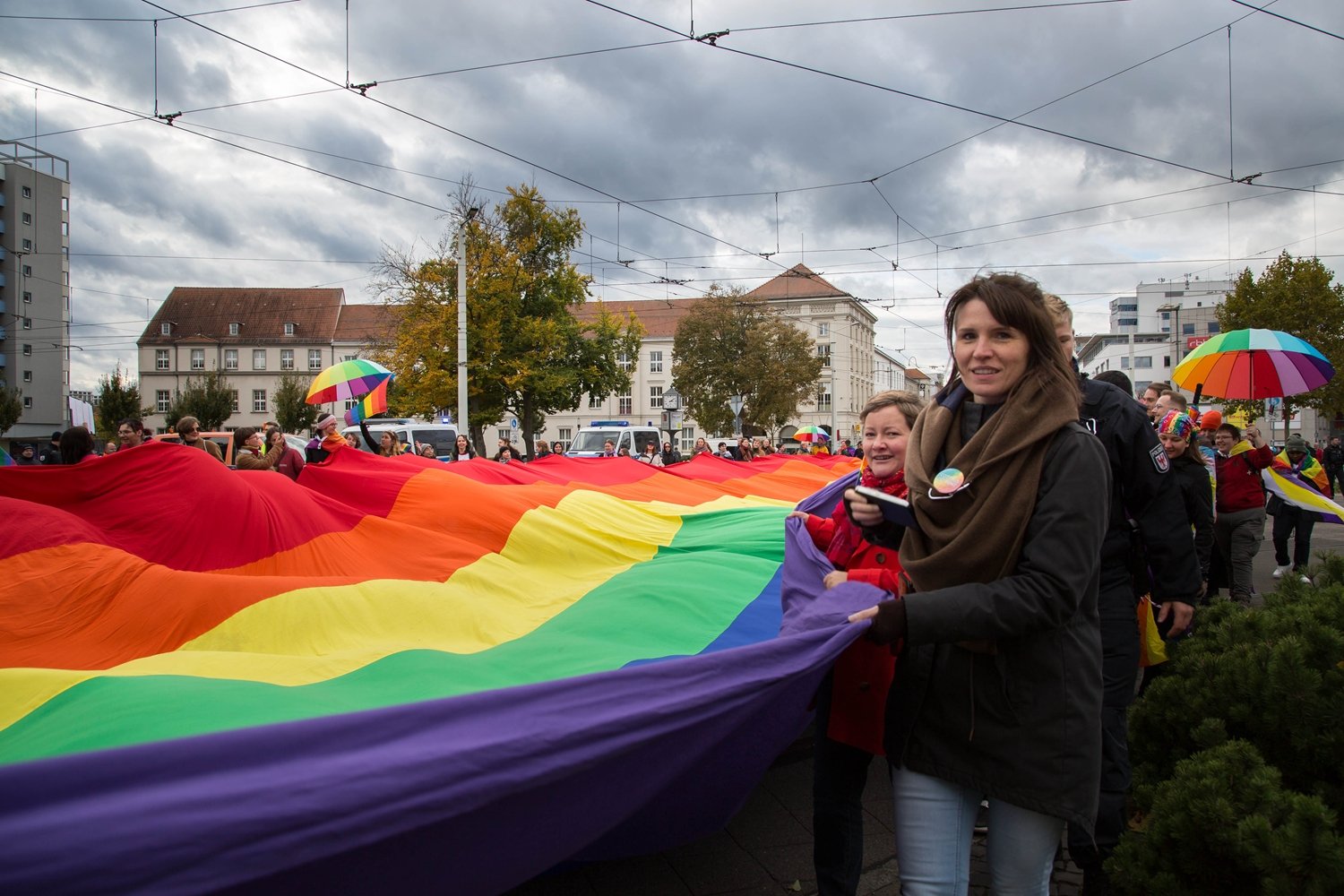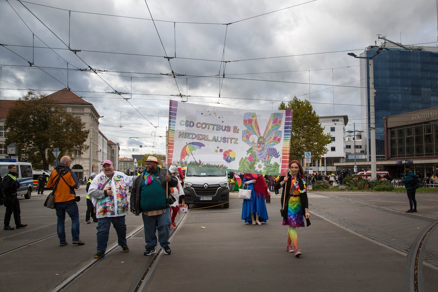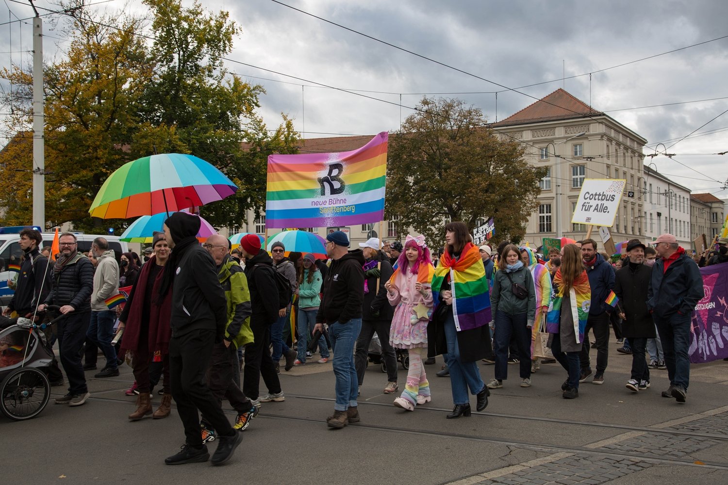 Wegen zweier Gegendemos musste der CSD in diesem Jahr unter erhöhtem Polizeischutz durch die Stadt ziehen. An Haltepunkten an der Oberkirche, an der BTU sowie am Stadthaus in der Bahnhofstraße fanden weitere Kundgebungen statt. Ausklingen wird der heutige Aktionstag im Glad-House.