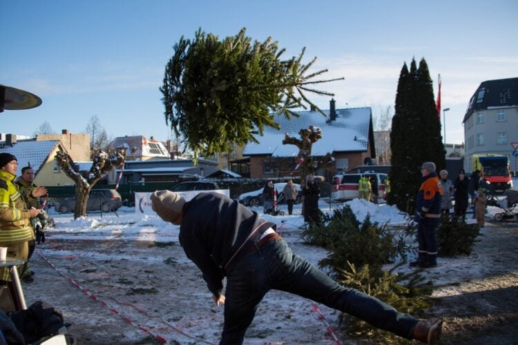 Am gestrigen Samstag fand bereits zum 11. Mal der beliebte Weihnachtsbaum-Weitwurf bei der Freiwilligen Feuerwehr Cottbus-Ströbitz statt. Die ganze Woche über hatten die Kameraden fleißig eingekauft, geputzt, Schnee beräumt, das Starterfeld aufgezeichnet und Dank zahlreicher Sponsoren die Gewinne für die Werfer eingetütet.