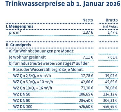 Nach Unternehmensangaben werden bei der Preisgestaltung sowohl die laufenden Kosten als auch geplante Investitionen berücksichtigt. Für das Jahr 2026 sind Investitionen in Höhe von mehr als 14,3 Millionen Euro vorgesehen. Diese sollen in die Erneuerung und Modernisierung von Leitungen und Anlagen fließen.