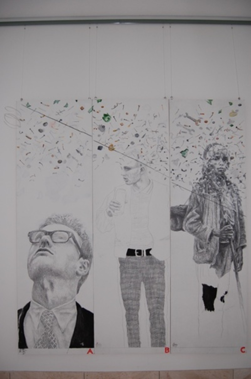 Mit Gemälden, Zeichnungen und Skulpturen des Cottbuser Künstlers Steffen Mertens setzt Vattenfall seine Reihe der Foyerausstellungen in der Cottbuser Hauptverwaltung fort. Die Eröffnung der mittlerweile 33. Kunstausstellung fand gestern statt. Unter dem Titel „Über Leben in Bildern“ sind 48 faszinierende Arbeiten zu sehen, die gleichermaßen mit der Struktur von Papier und Zeichenuntergründen und mit den grafischen Mitteln von Stift, Tusche und Farbe spielen. Sie entwickeln so einen immer neuen, überraschenden Kosmos zwischen Sichtbarem und Assoziativem, wie etwa auf dem Bild „Fünf erhabene Gelehrte auf der Suche nach dem Verborgenen“, das dem Betrachter nur auf den ersten Blick den verlassenen, von Zigarettenstummeln übersäten Schauplatz einer intensiven Denkerrunde zeigt.