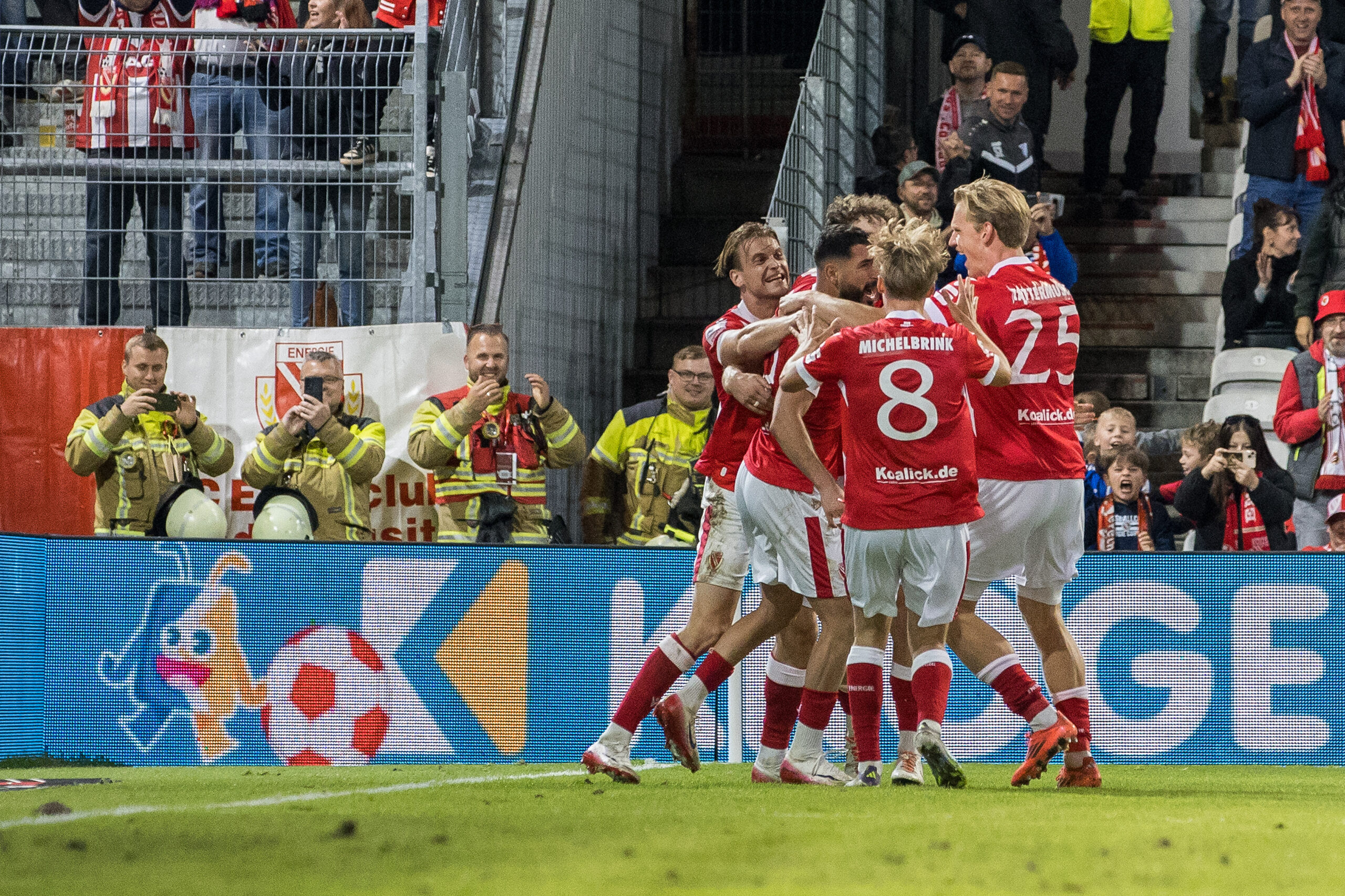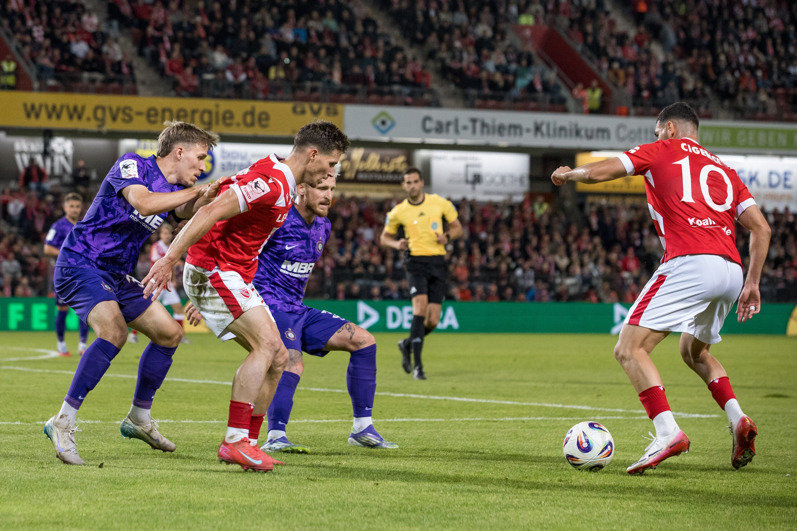 Der FC Energie Cottbus hat das Ostderby gegen Erzgebirge Aue mit 2:1 gewonnen. Moritz Hannemann brachte die Lausitzer bereits in der 2. Minute in Führung, ehe Julian Guttau (15.) für die Gäste noch in der ersten Halbzeit ausglich. Nach der Pause sorgte Tolcay Cigerci per Foulelfmeter in der 67. Minute für den Endstand. Zum Abschluss der bislang erfolgreichen Englischen Woche wartet am Sonntag nun der SC Verl auf die Cottbuser.