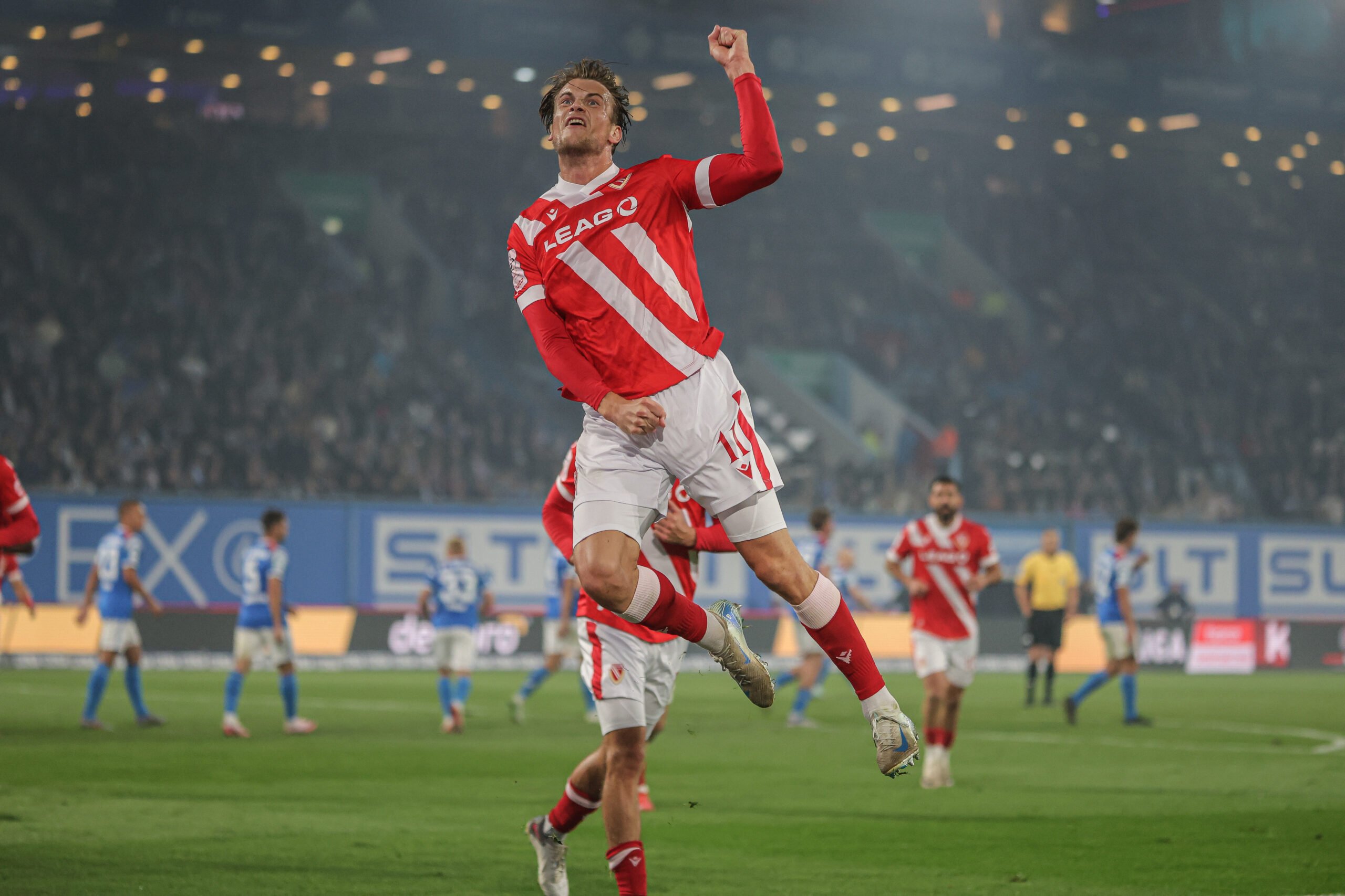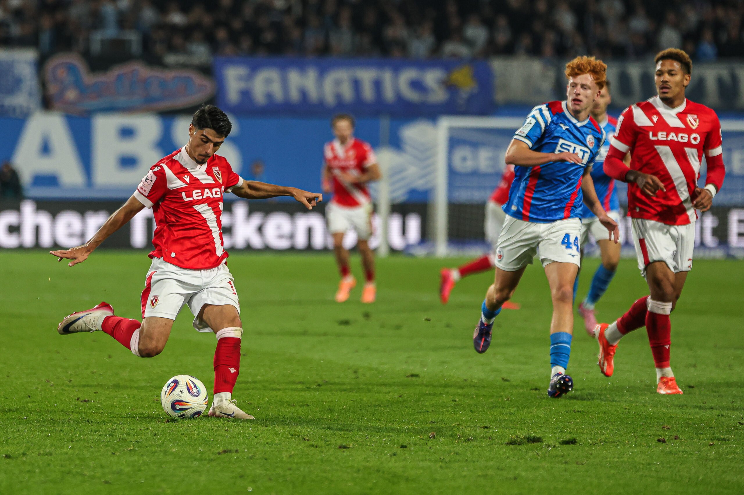 Der FC Energie Cottbus hat im Ostderby bei Hansa Rostock einen 3:1-Auswärtssieg eingefahren. Moritz Hannemann brachte die Lausitzer in der 36. Minute in Führung, ehe Ryan Naderi kurz vor der Pause zum 1:1 ausglich (43.). Nach dem Seitenwechsel rettete Torhüter Marius Funk sein Team mehrfach mit starken Paraden, bevor Erik Engelhardt in der 71. Minute die erneute Führung erzielte. In der Nachspielzeit setzte Can Moustfa (90.+3) mit dem 3:1 den Schlusspunkt.