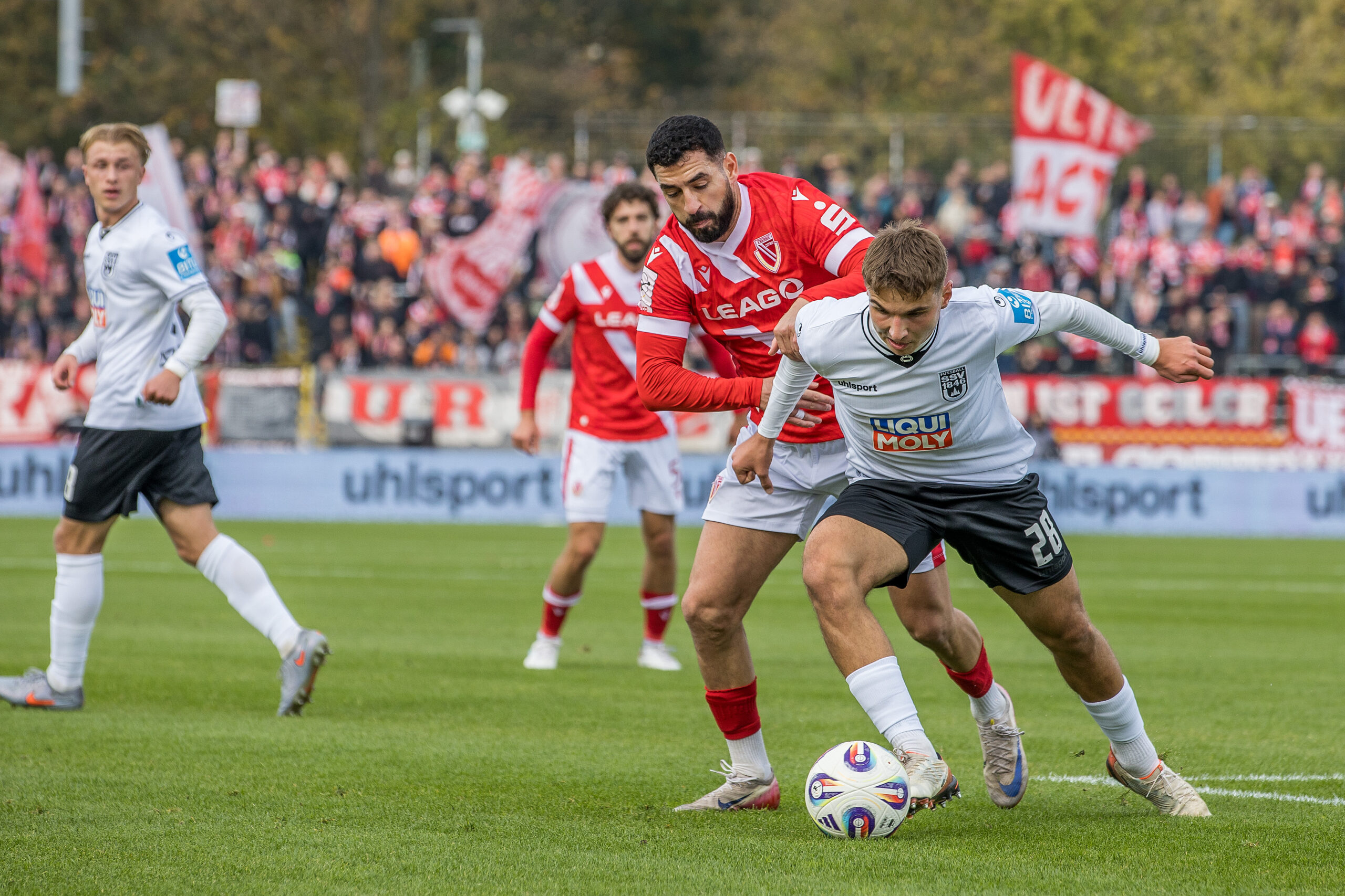 Nach Wiederanpfiff blieb es zunächst ein zähes Spiel ohne klare Torchancen. In der 55. Minute sorgte Thiele für das erste Ausrufezeichen, als er sich im Strafraum behauptete, im Fallen aber nicht mehr zum Abschluss kam. Der Angreifer reklamierte ein Foul, doch Schiedsrichter Michael Bacher ließ weiterspielen. Cottbus erhöhte danach den Druck, presste höher und bestimmte zunehmend das Geschehen. In der 67. Minute fiel schließlich der Führungstreffer: Nach einem Freistoß hielt Ulms Westermeier Engelhardt im Strafraum fest – Elfmeter. Cigerci verwandelte gewohnt sicher zum 0:1. Cottbus drängte danach auf die Entscheidung, verpasste zunächst aber den zweiten Treffer. Stattdessen kam Ulm in der 85. Minute durch einen Distanzschuss von Scholze zum Ausgleich, bei dem Funk zwar noch die Finger am Ball hatte, ihn aber nicht mehr abwehren konnte.
