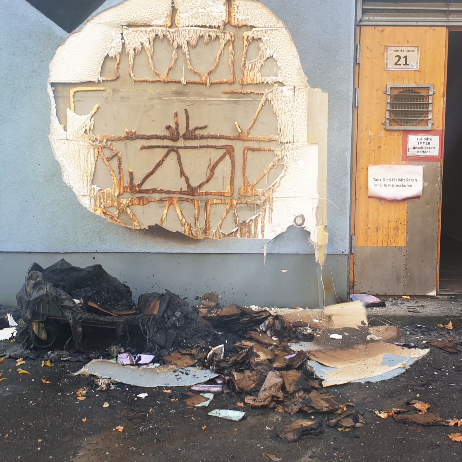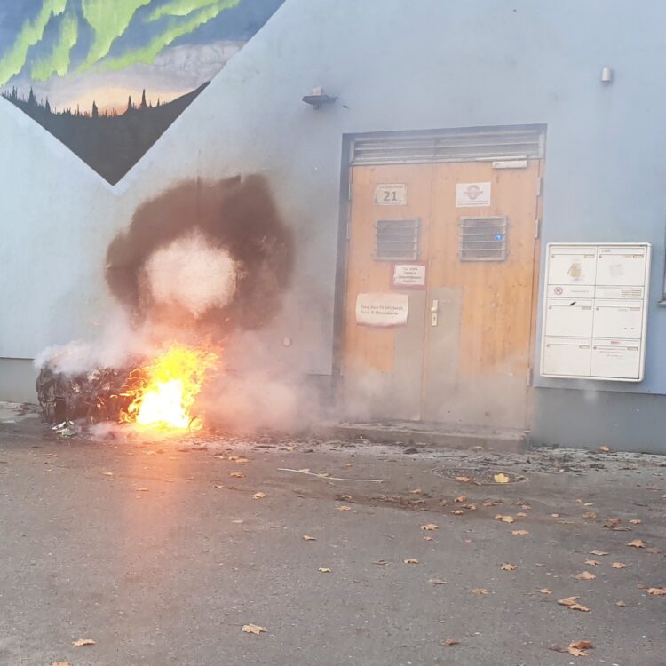 Wie das Regenbogenkombinat Cottbus mitteilte, kam es am 20. Oktober 2025 gegen 15:05 Uhr zu einem Brand auf dem Hinterhof des queeren Zentrums in der Thierbacher Straße. Eine dort abgestellte Papiertonne geriet aus bislang ungeklärter Ursache in Flammen. Eine ältere Frau machte die Anwesenden auf den Brand aufmerksam. Vier Ehrenamtliche eilten aus dem Gebäude, eine Person griff zum Feuerlöscher und begann mit den ersten Löschversuchen. Wenig später trafen Feuerwehr und Polizei ein.