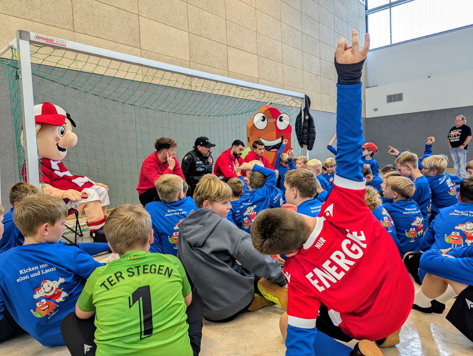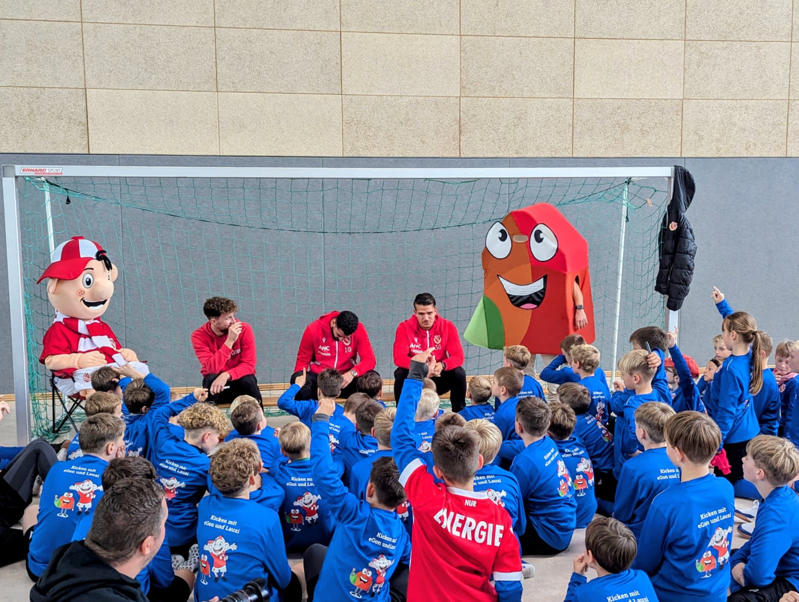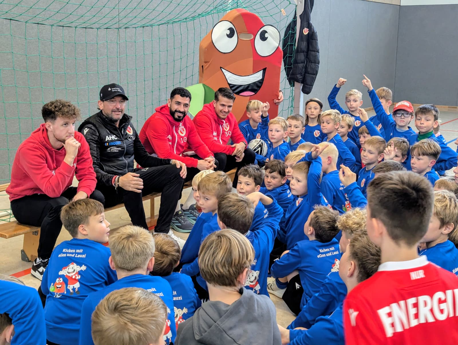 Eine Woche voller Fußball, Teamgeist und unvergesslicher Erlebnisse! Das eG Wohnen Feriencamp in Zusammenarbeit mit dem FC Energie Cottbus brachte wie immer zahlreiche Kinderaugen zum Leuchten. Insgesamt 58 Mädchen und Jungen nahmen in der Herbstferienwoche am Camp teil und erlebten neben intensiven Trainingseinheiten und Freizeitaktionen auch einen ganz besonderen Besuch: Cheftrainer Claus-Dieter Wollitz kam gemeinsam mit den FCE-Profis Tim Campulka, Max Böhnke und Tolcay Ciğerci vorbei, um die jungen Talente zu überraschen.
