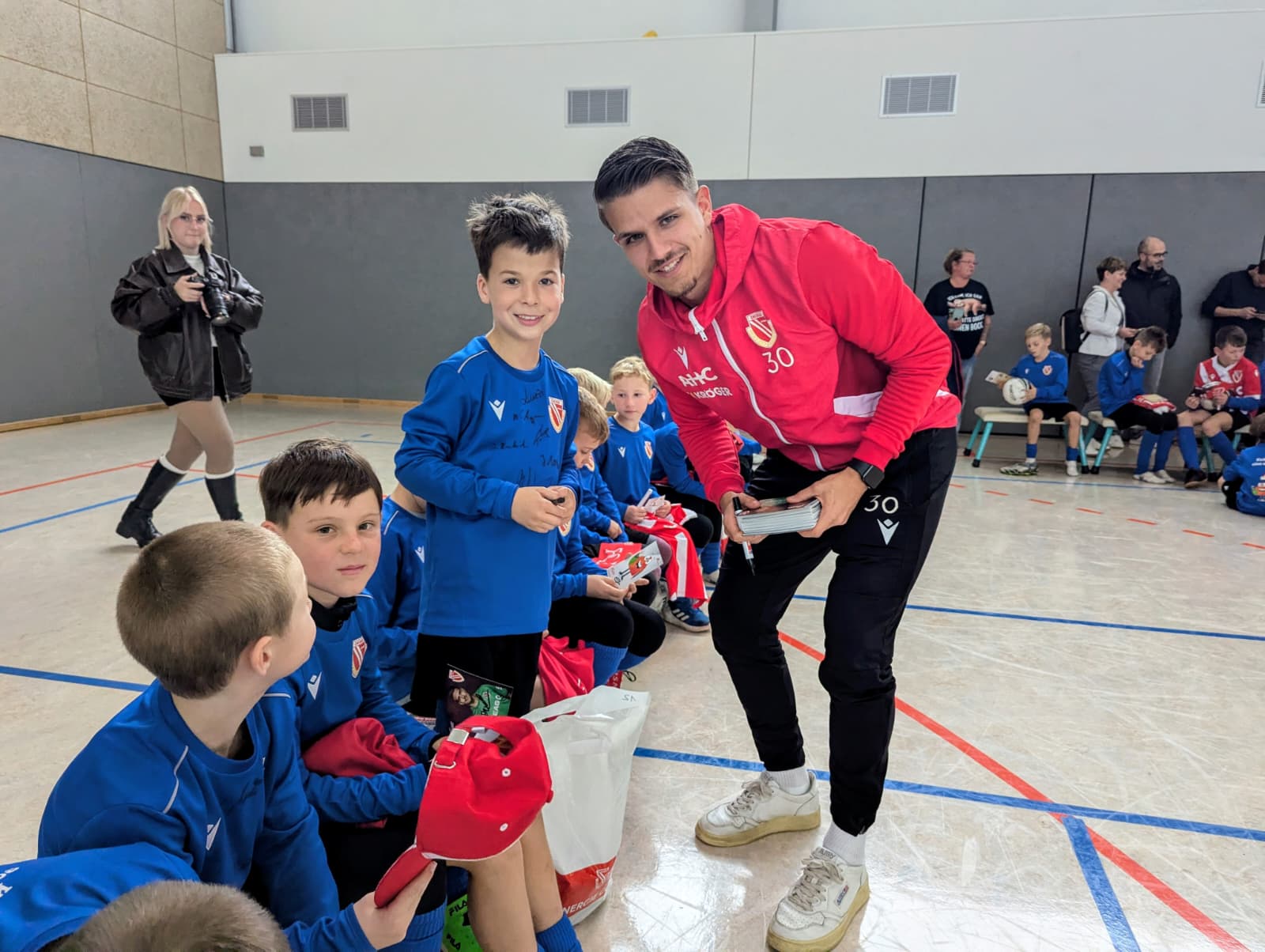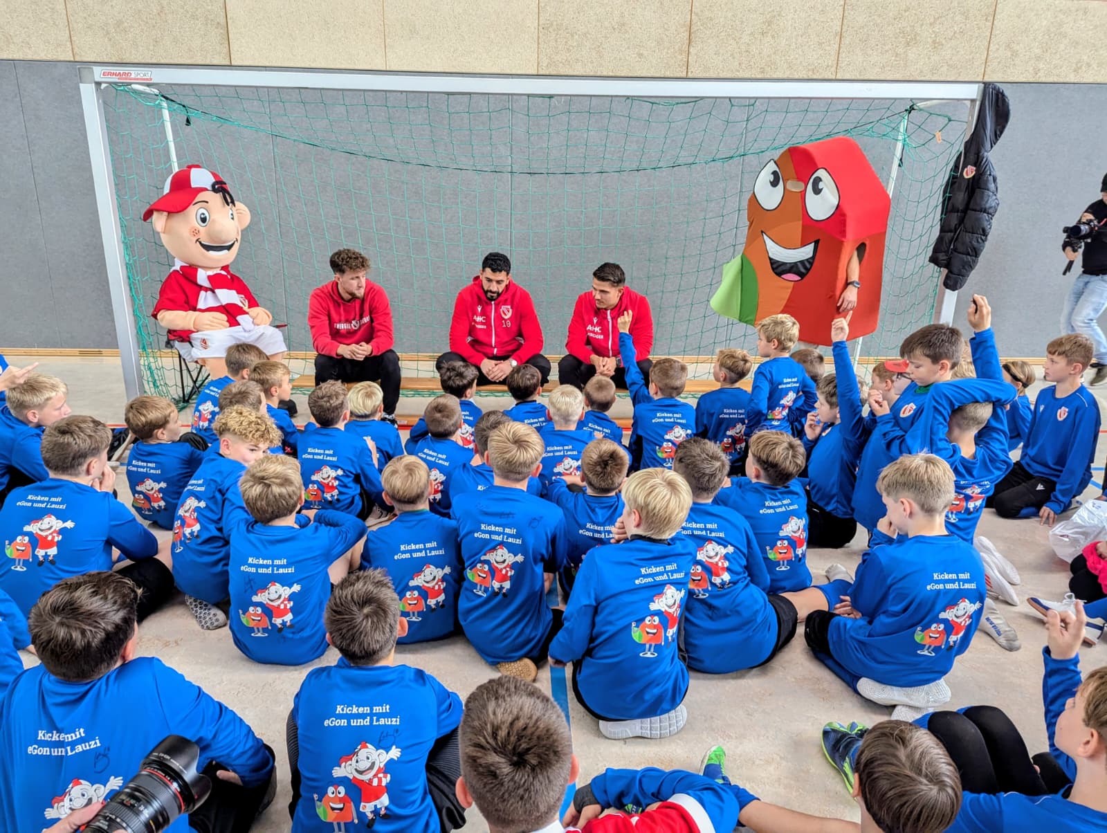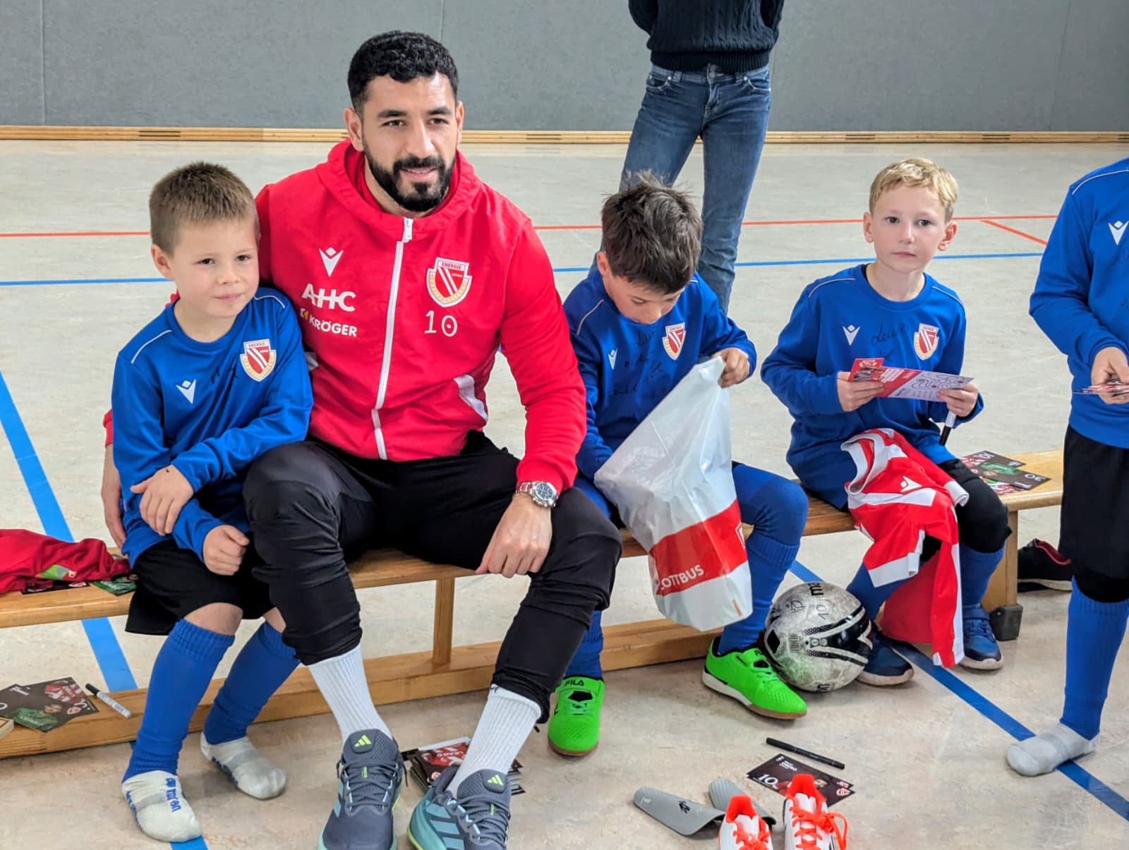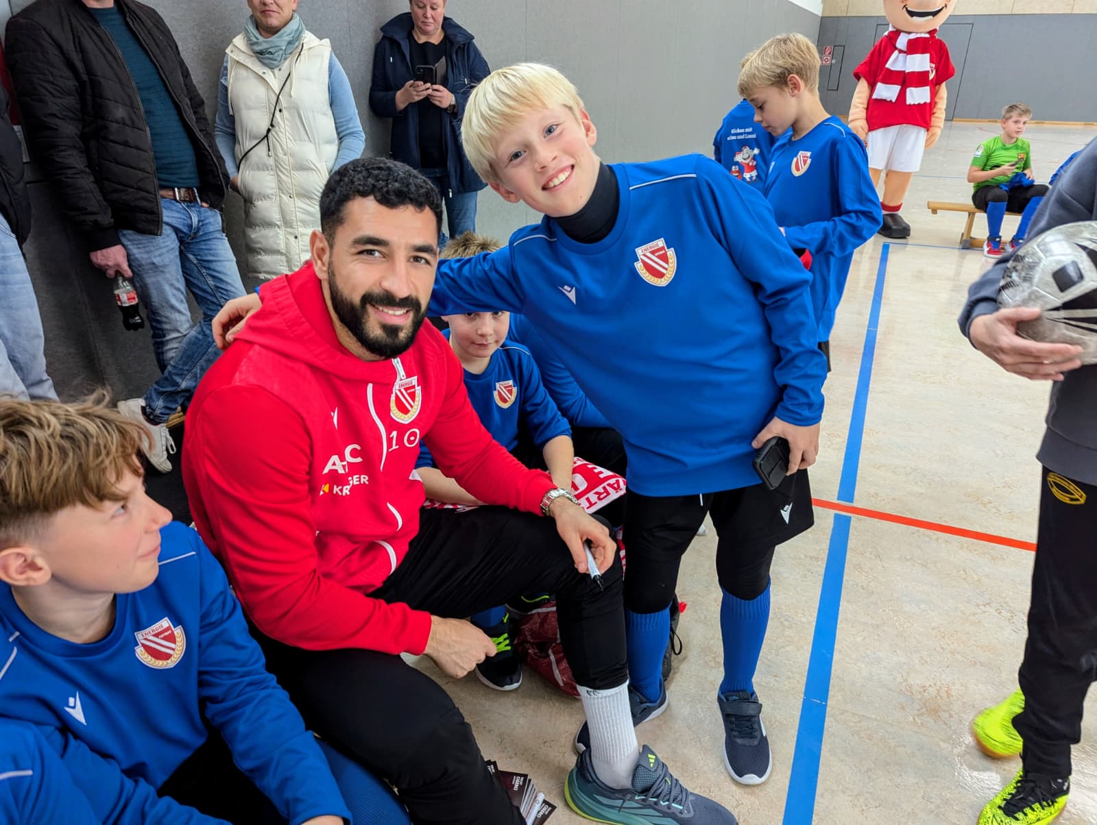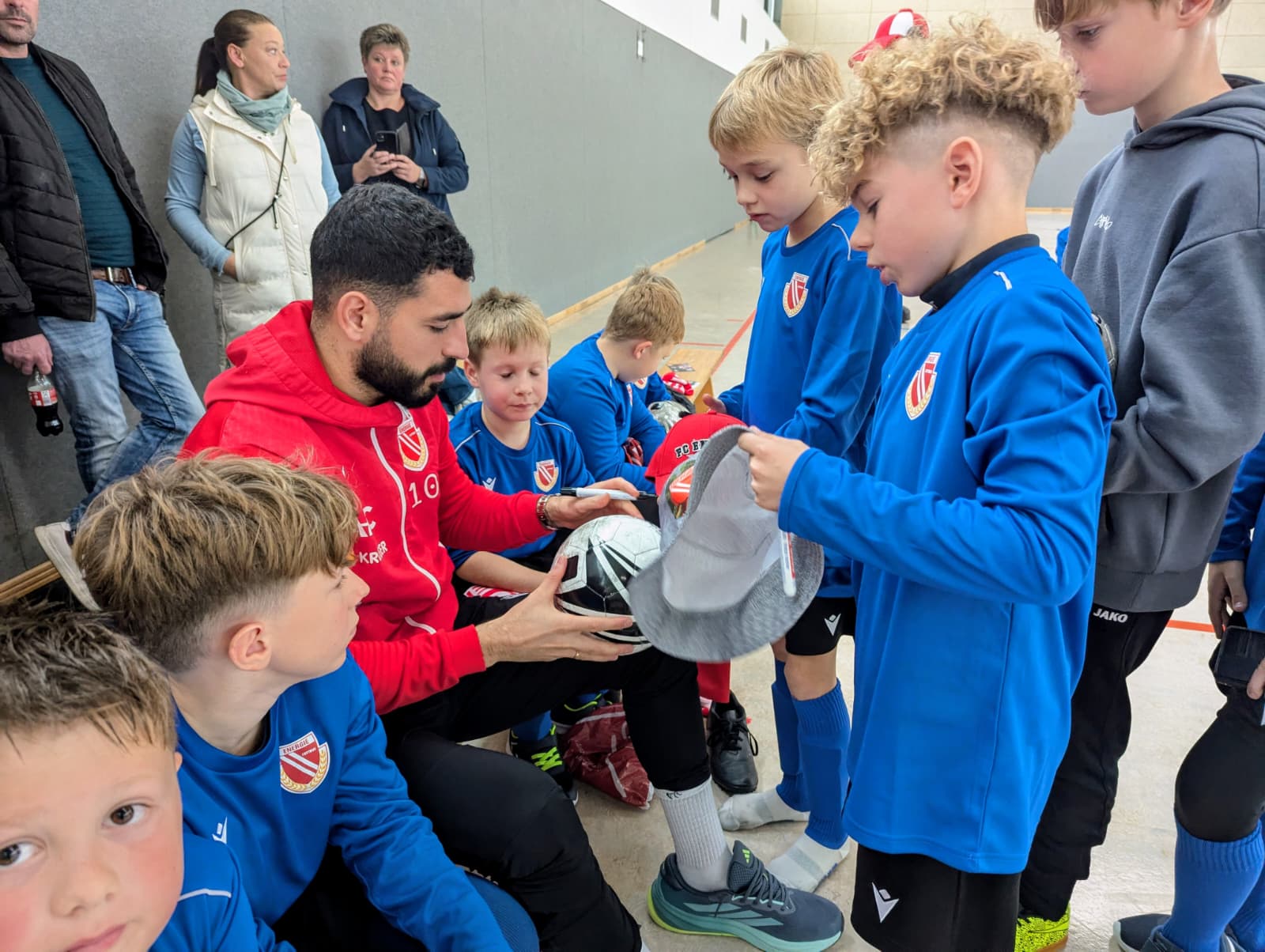 Auch Mittelfeldspieler Tolcay Ciğerci nahm sich viel Zeit für die Kinder. „Kinder sind das schönste Wesen, sage ich mal, und man freut sich immer, denen eine Freude zu bereiten“, sagte der 30-Jährige. „Da kommen Erinnerungen hoch, was für Turniere man selbst damals gespielt hat.“