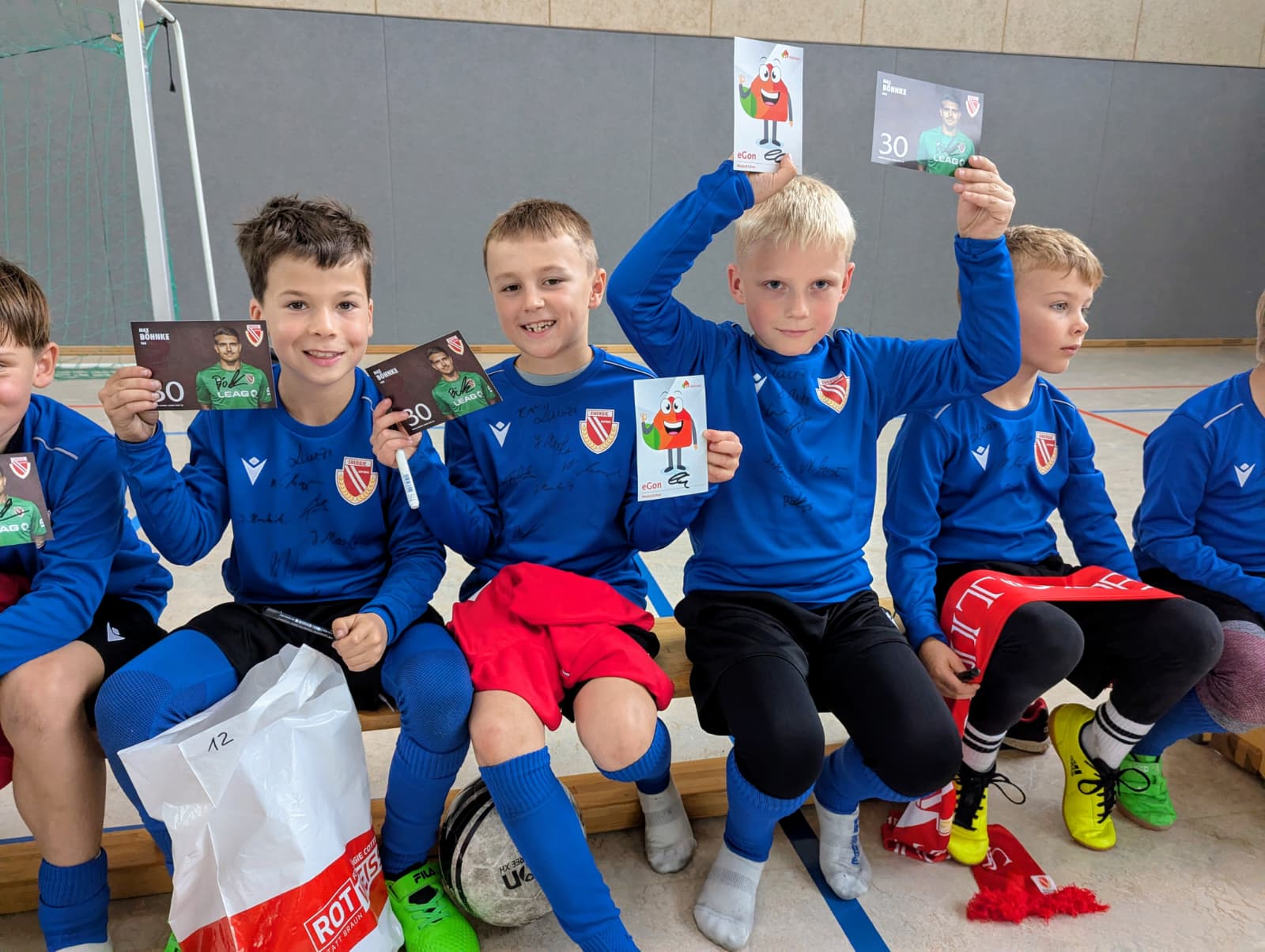 Neben den sportlichen Einheiten stand auch Spaß auf dem Programm. „Wir waren im PiPaPo, gestern haben wir den Ausflug gemacht“, berichtete Marx. Täglich gab es gemeinsames Mittagessen, organisiert durch das SOS Kinderdorf, und für jedes Kind einen prall gefüllten Beutel. „Ein herzliches Dankeschön an die eG Wohnen, die wieder als Sponsor auftritt und Beutel gepackt hat – mit Trinkflaschen, Pfeifen und Sitzkissen fürs Stadion“, sagte Marx.