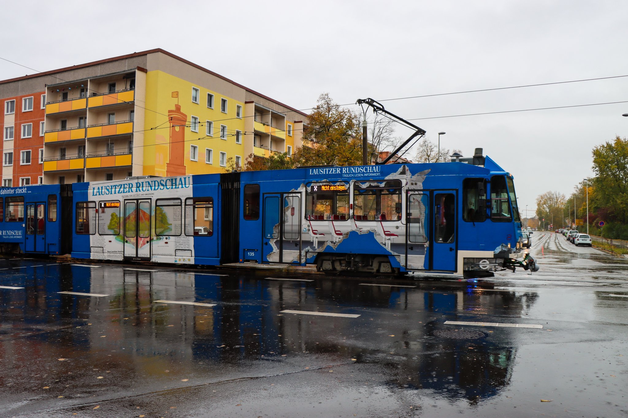 Cottbus: Auto mit Straßenbahn zusammengestoßen. 54-Jährige verletzt