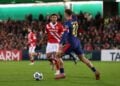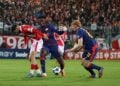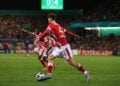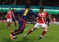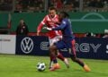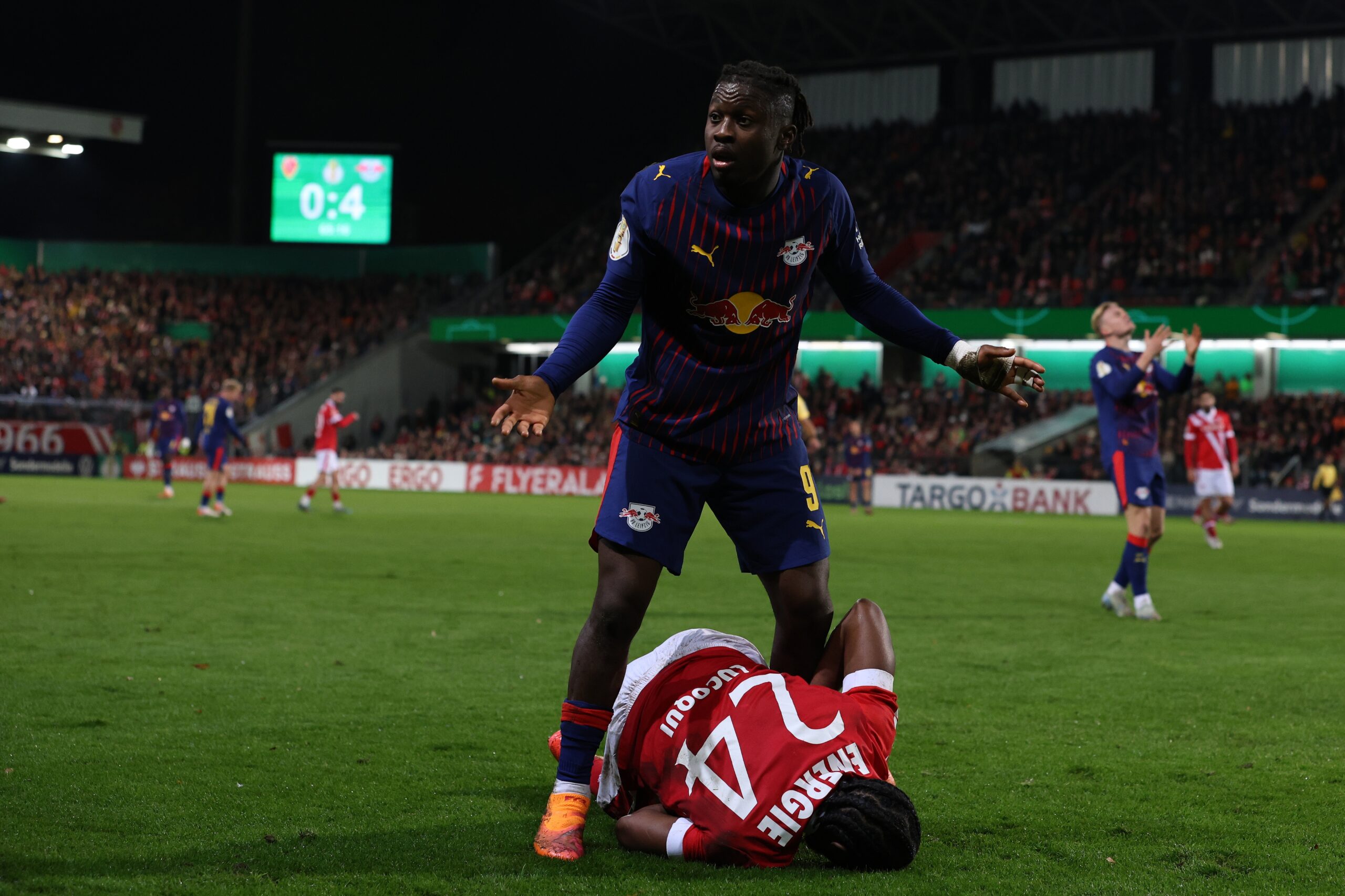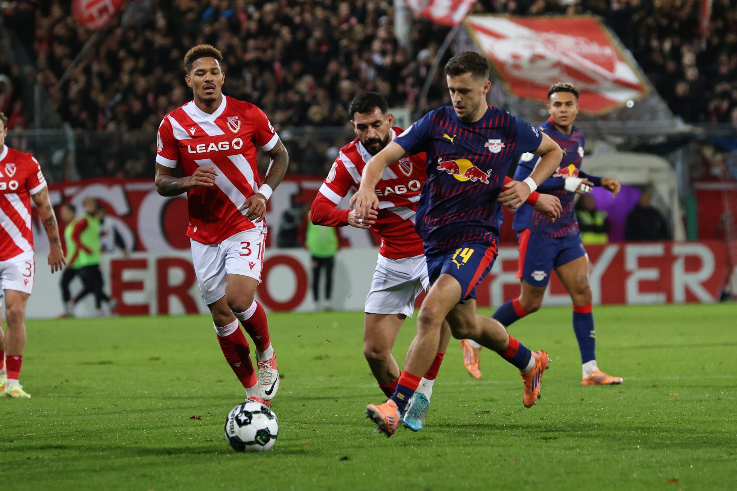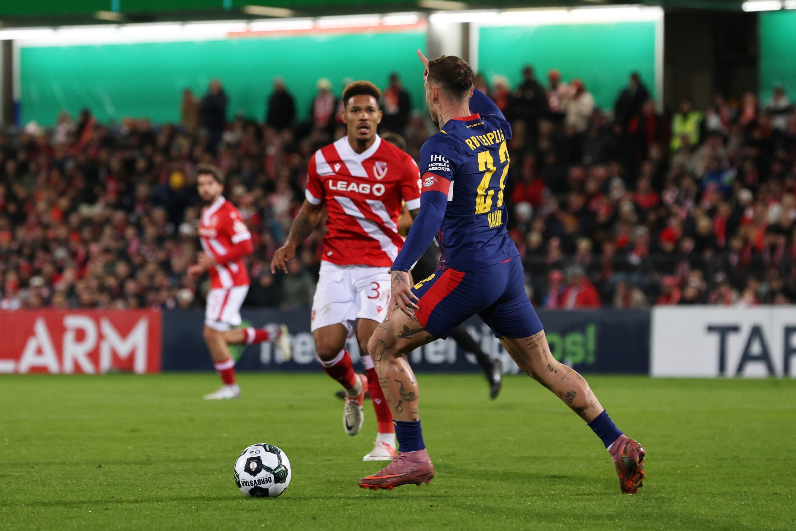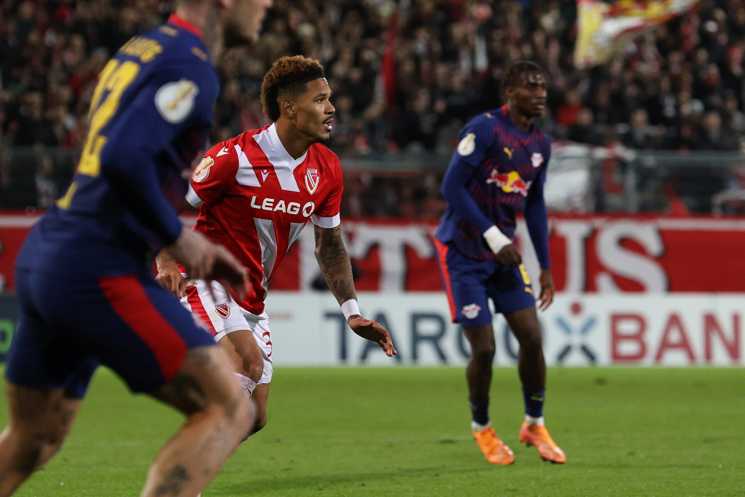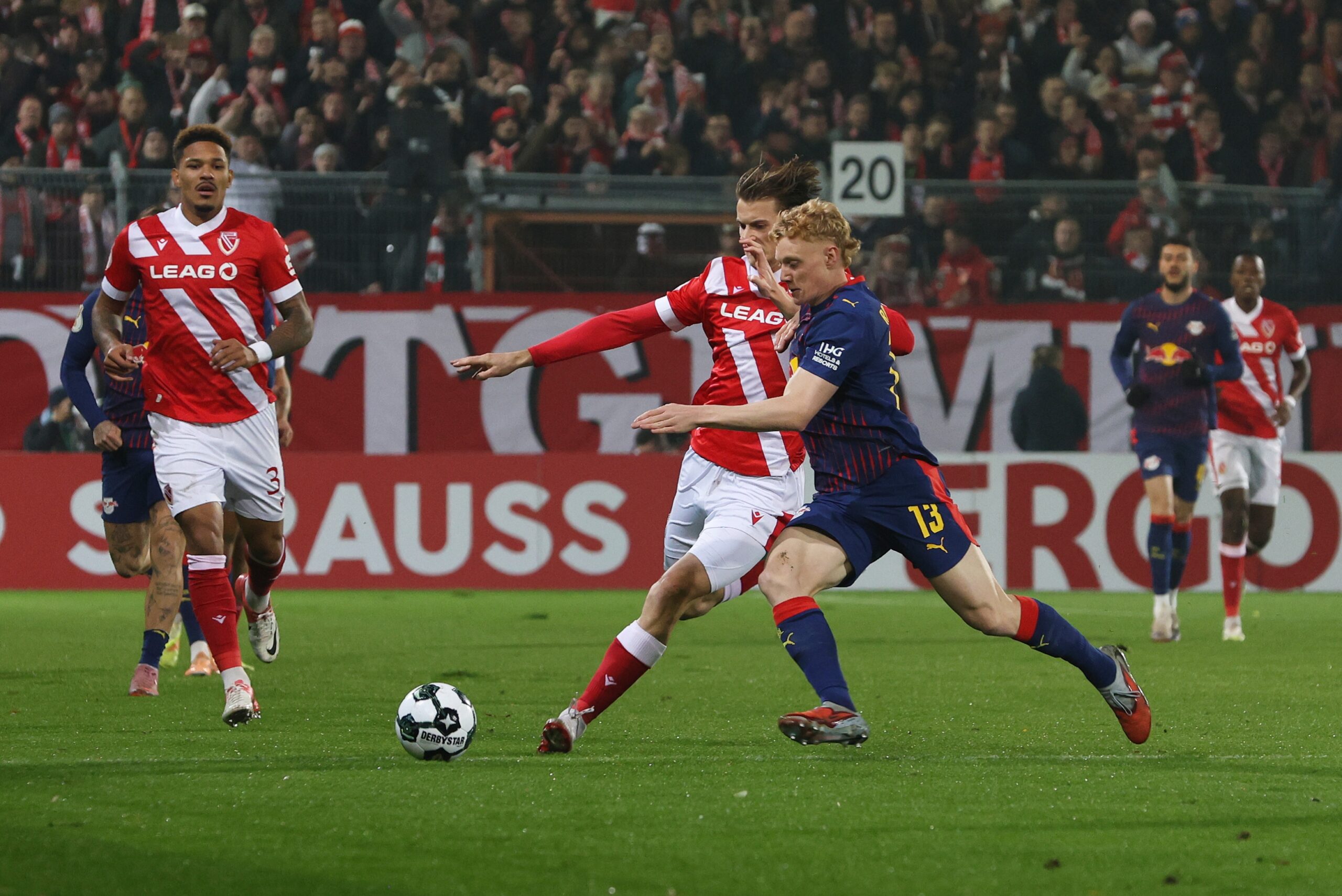 Dann aber schlug der Favorit zu. Leipzigs Johan Bakayoko nutzte in der 12. Minute die erste echte Unaufmerksamkeit der Cottbuser Defensive, setzte sich individuell stark durch und traf zum 0:1. Der Bundesligist übernahm zunehmend die Kontrolle, kombinierte sicher und kam in der 28. Minute nach einer Ecke von David Raum zum 0:2: Christoph Baumgartner stieg am höchsten und köpfte wuchtig ein. Vorausgegangen war ein Ballverlust in der Cottbuser Hintermannschaft. Energie versuchte anschließend, wieder eigene Akzente zu setzen, doch Biankadi scheiterte erneut an Leipzigs Schlussmann (31.). Kurz vor der Pause erhöhte der Favorit weiter: Nach einem Freistoß aus dem Halbfeld stand Baumgartner völlig frei und markierte seinen zweiten Treffer des Abends (37.). Mit einem klaren 0:3-Rückstand ging es für die Lausitzer in die Kabine.