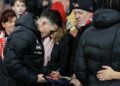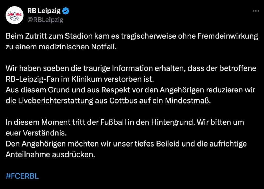 Zur Pause wechselte Wollitz doppelt: Campulka und Engelhardt kamen für Awortwie-Grant und Biankadi. Doch die Partie nahm einen ganz anderen Verlauf als die erste Hälfte. Kurz nach Wiederanpfiff wurde bekannt, dass ein Leipziger Anhänger beim Einlass zusammengebrochen war und im Krankenhaus verstarb. Beide Fanlager stellten ihren Support zunächst vollständig ein – auf und neben dem Rasen herrschte eine spürbare Stille.