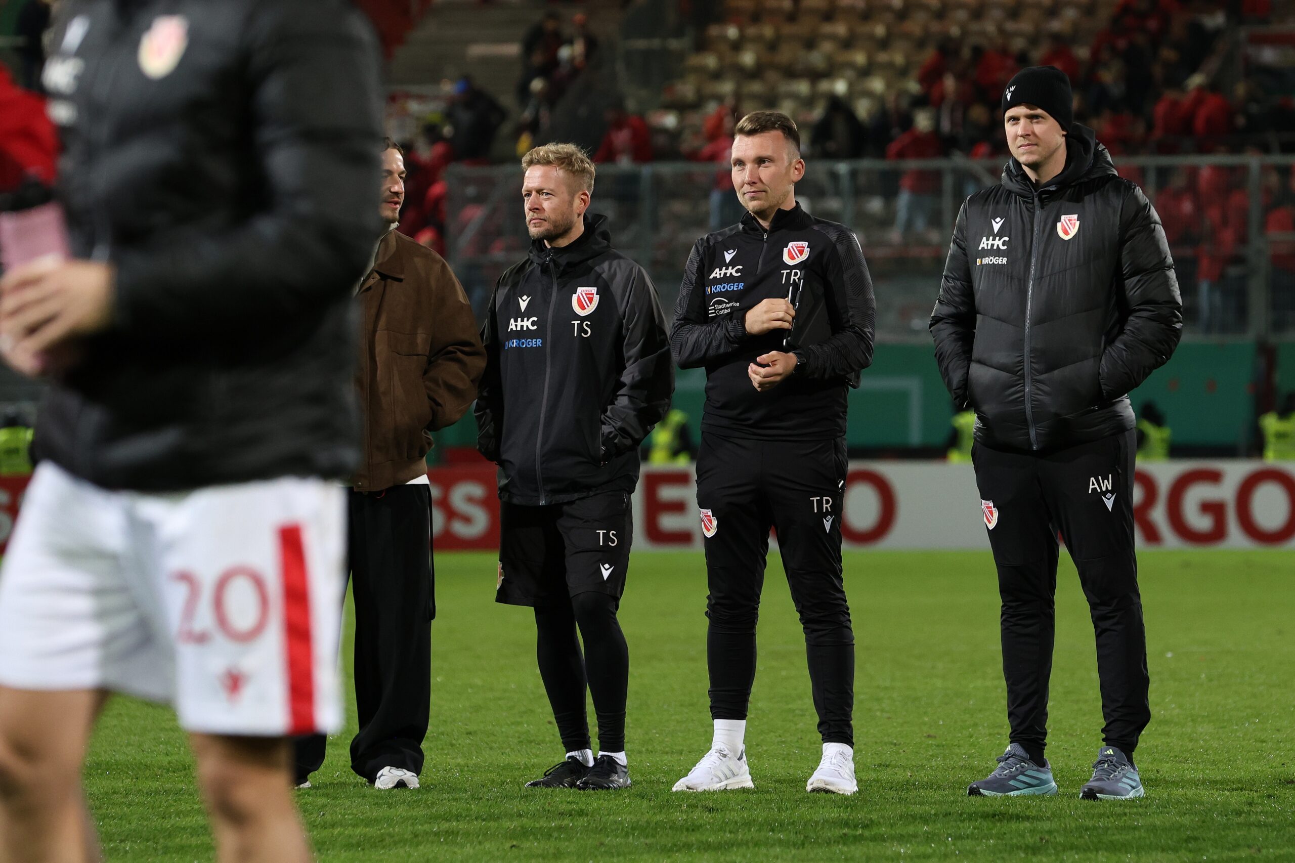 Claus-Dieter Wollitz, Trainer FC Energie Cottbus: „Auch von mir natürlich herzliches Beileid. Zum Spiel ist eigentlich alles gesagt. Wenn man einen Pokalkrimi haben will, muss man ruhende Bälle besser verteidigen. Wir können insgesamt eine bessere Aufmerksamkeit in der letzten Reihe haben. Ich wünsche Ole Werner und seiner Mannschaft viel Erfolg in der dritten Runde.“