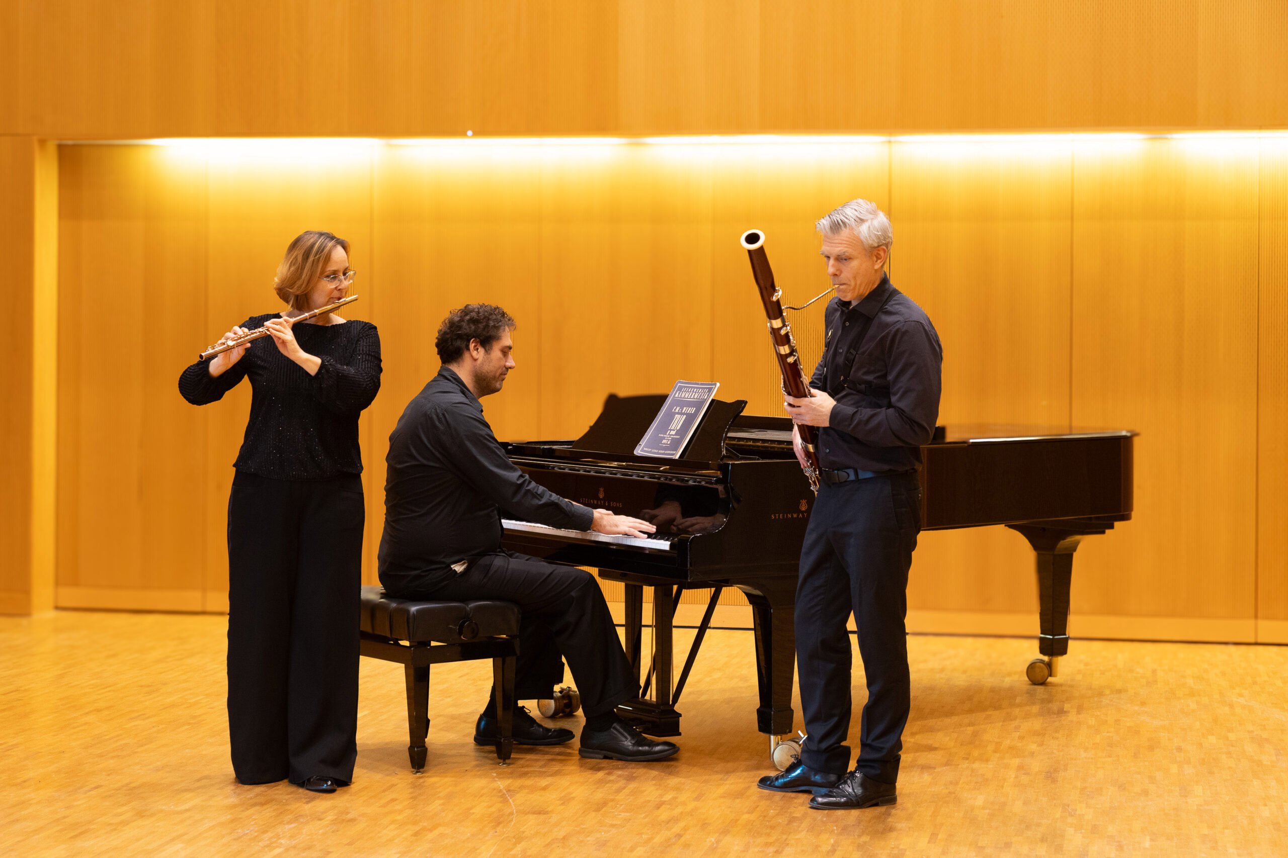 Unter dem Titel „Zu dritt von Süd nach Nord“ gestalten Dagmar Klauck (Flöte), Neritan Hysa (Klavier) und Bastian Brewing (Fagott) einen abwechslungsreichen Abend, der Werke aus vier europäischen Regionen miteinander verbindet. Das Publikum darf sich auf Kompositionen von Pierre Max Dubois, Jörg Duda, Ludwig van Beethoven und Carl Maria von Weber freuen.
