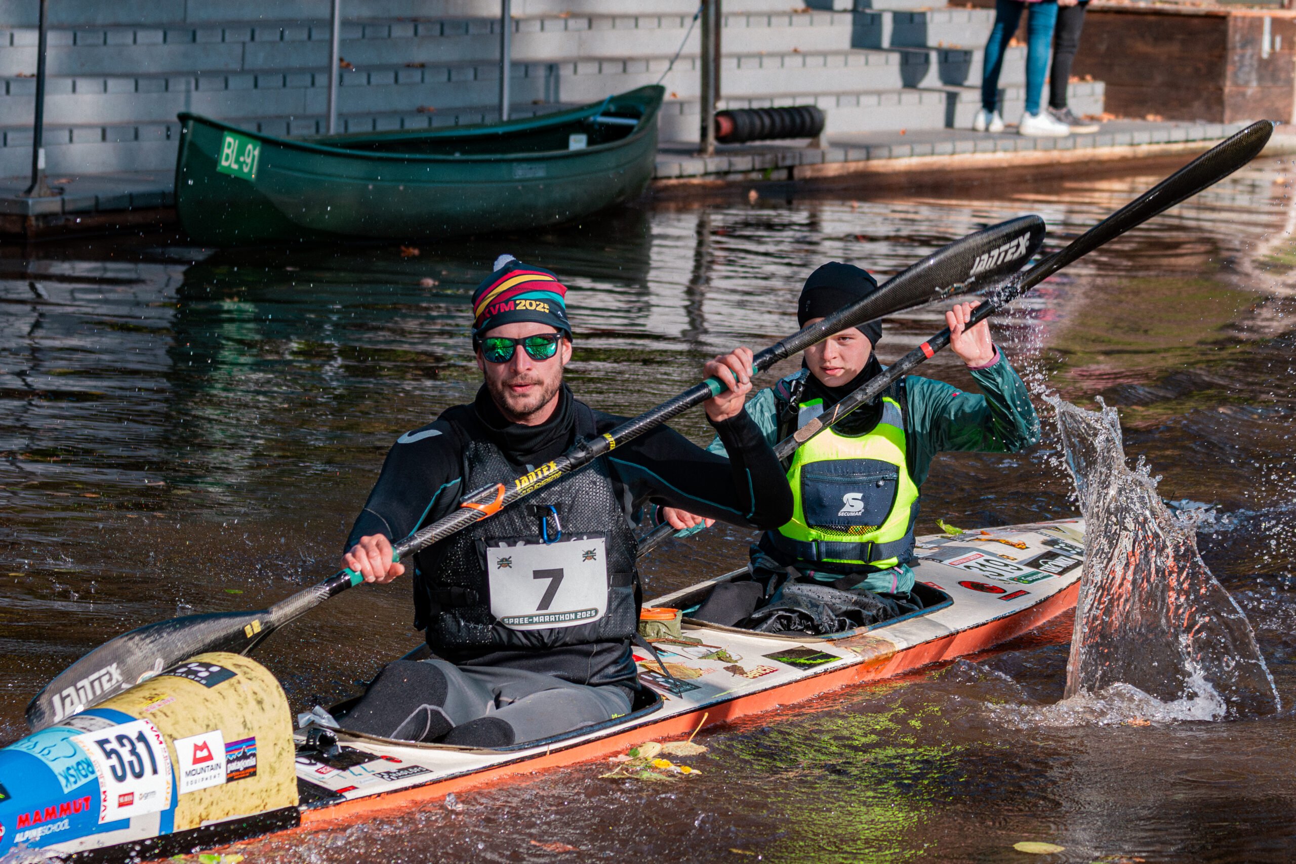 Der Start an der Talsperre erfolgte bei sonnigen Bedingungen und rund zehn Grad. Der traditionelle Le-Mans-Start mit Motivationsmusik und Kanonenschuss sorgte direkt zu Beginn für große Spannung. Etwa 100 Boote gingen zeitgleich auf den ersten Abschnitt, der nach einem kurzen Dreieckskurs zur langen Portage an der Staumauer führte. Anschließend folgte der technisch anspruchsvolle Weg auf der Spree in Richtung Cottbus, geprägt von Sohlschwellen, Portagen und taktischem Paddeln.