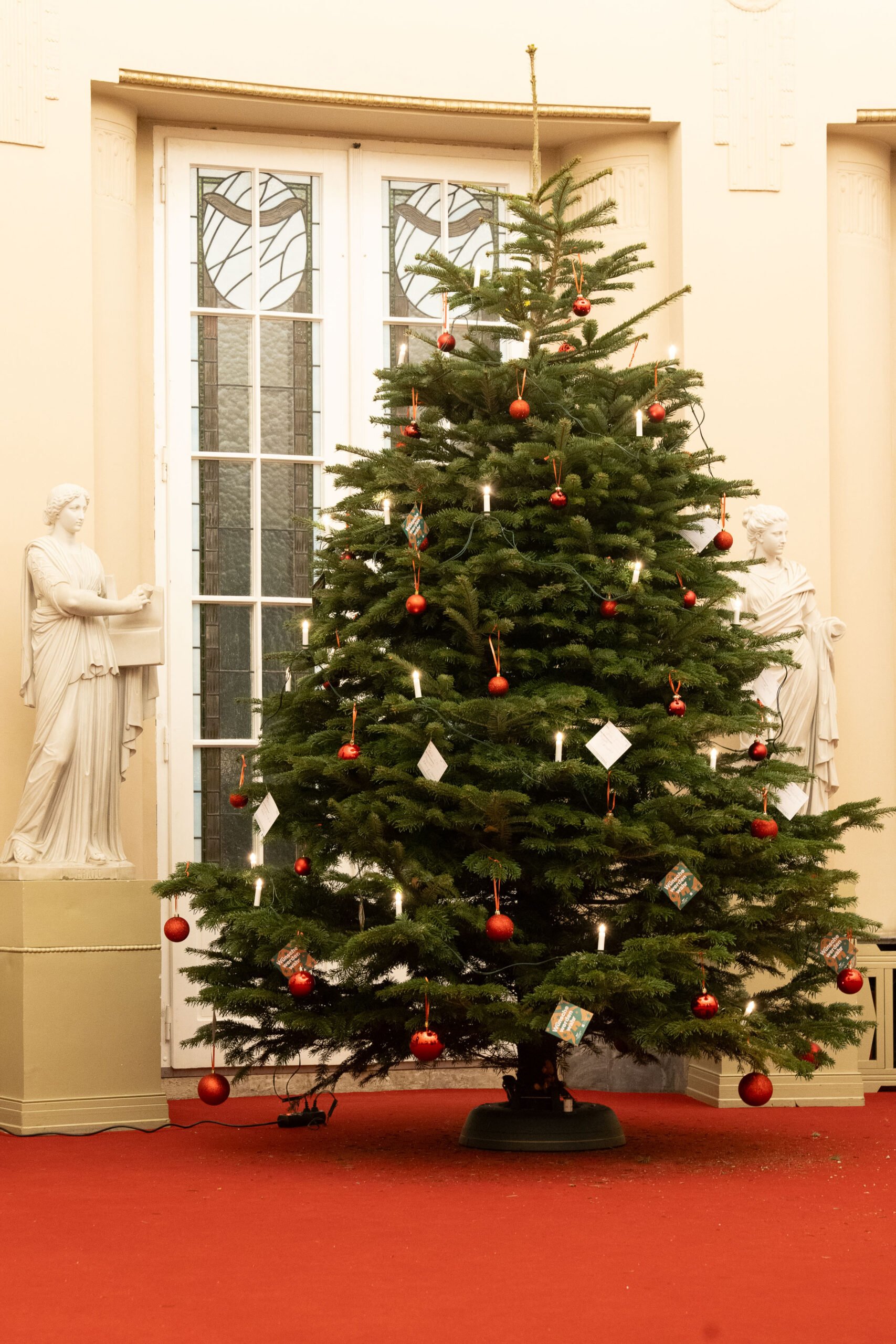 Die Zettel, auf denen die Kinder ihren Wunsch notiert haben, sind an Weihnachtsbäumen im Kuppelfoyer des Großes Haus und im Foyer der Kammerbühne zu den Vorstellungen sowie im Besucherservice und in der Theaterkantine „Tellheim“ zu den jeweiligen Öffnungszeiten zu finden. Die ausgefüllten Wunschzettel können dort ab Dienstag, 25. November 2025, gepflückt werden. Neu ist, dass die Kinder als Dankeschön im Vorfeld eigenen Christbaumschmuck gestaltet haben, von dem die Schenkenden sich jeweils ein Stück mitnehmen dürfen.