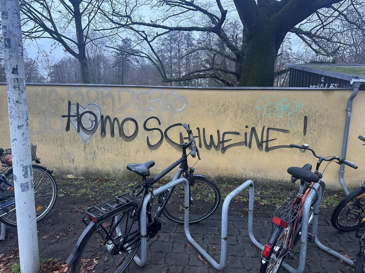 Der Vorfall wurde am Samstag angezeigt. Nach Polizeiangaben erstreckten sich die Botschaften über mehr als zehn Meter. Die Einsatzkräfte sicherten Spuren und veranlassten die Beseitigung der Schmierereien. Die Ermittlungen übernimmt der polizeiliche Staatsschutz.