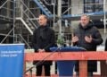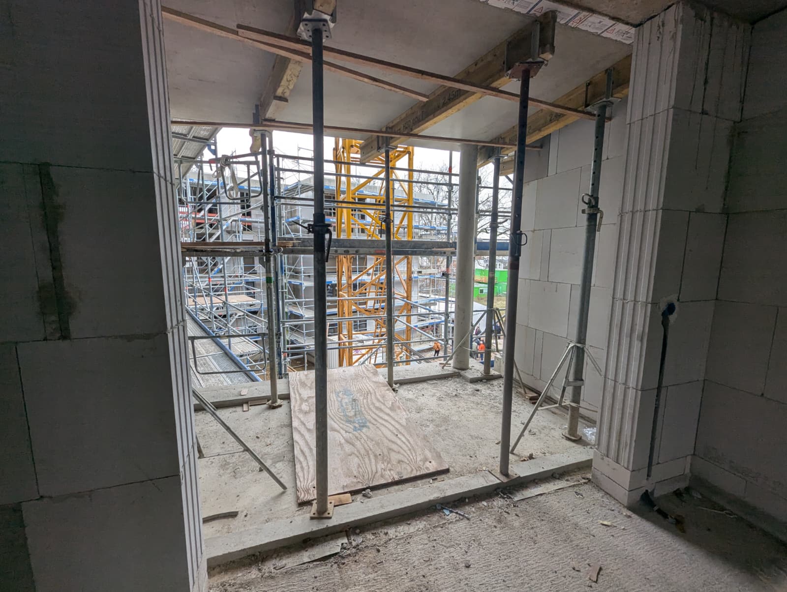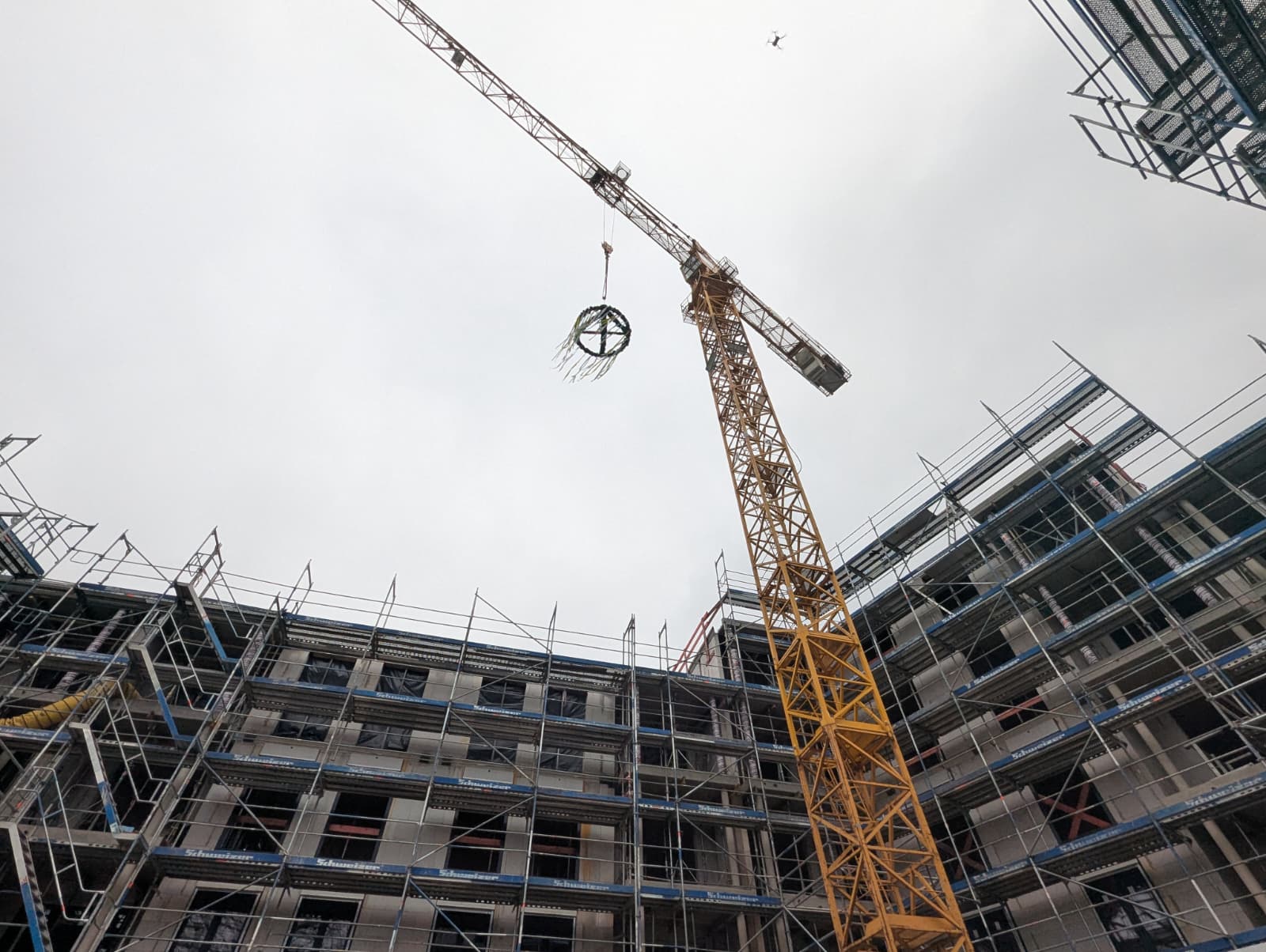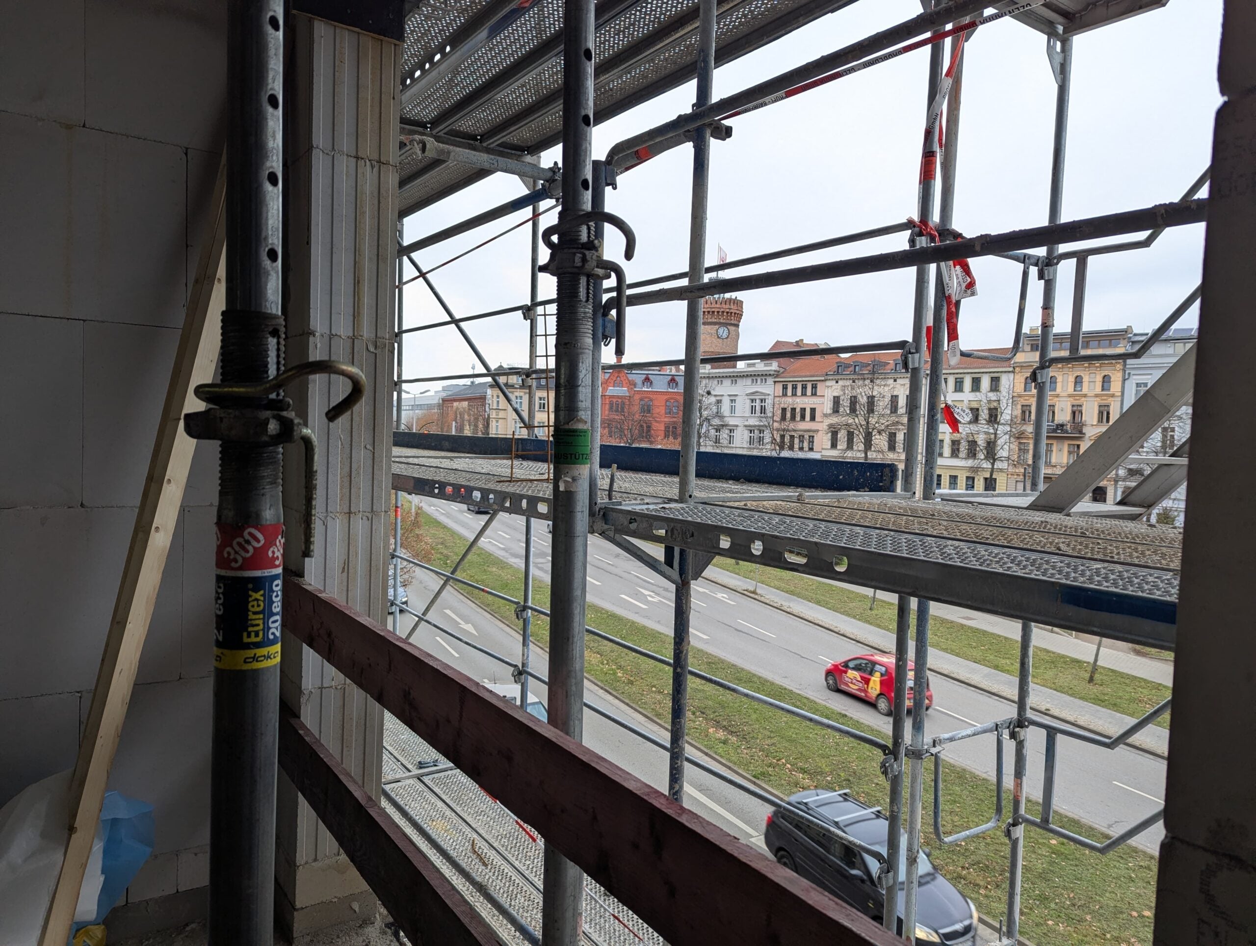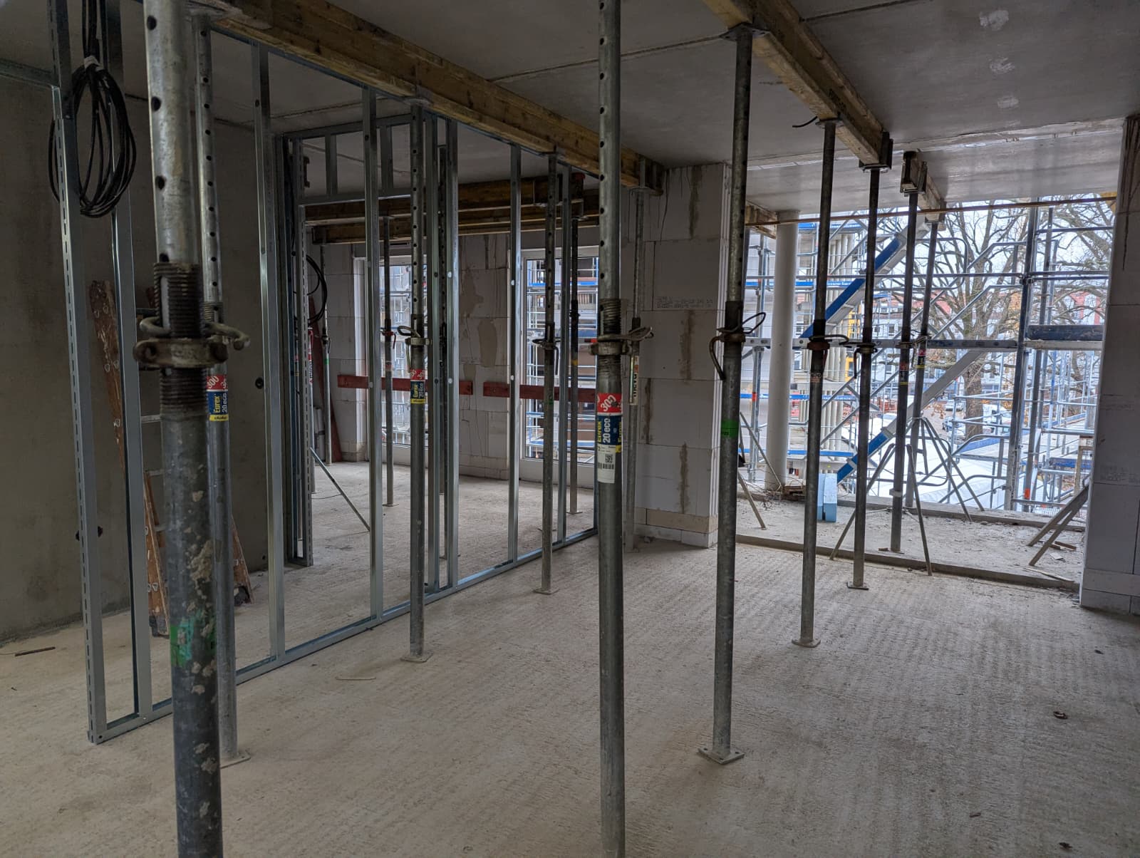 „Alles soweit nach Zeitplan. Wir sind sehr zufrieden und wir sind hier im ersten Bauabschnitt jetzt auf der Zielgeraden“, sagte Herke beim Rundgang über die Baustelle. Das Gebäudevolumen entlang der Franz-Mehring-Straße sei nun deutlich sichtbar. Bereits in etwa einem Monat, also bis Weihnachten, soll der Rohbau vollständig geschlossen sein. „Das heißt, alle Fenster sind dann eingebaut und dann heißt es, Innenausbau für die nächsten sechs bis acht Monate.“