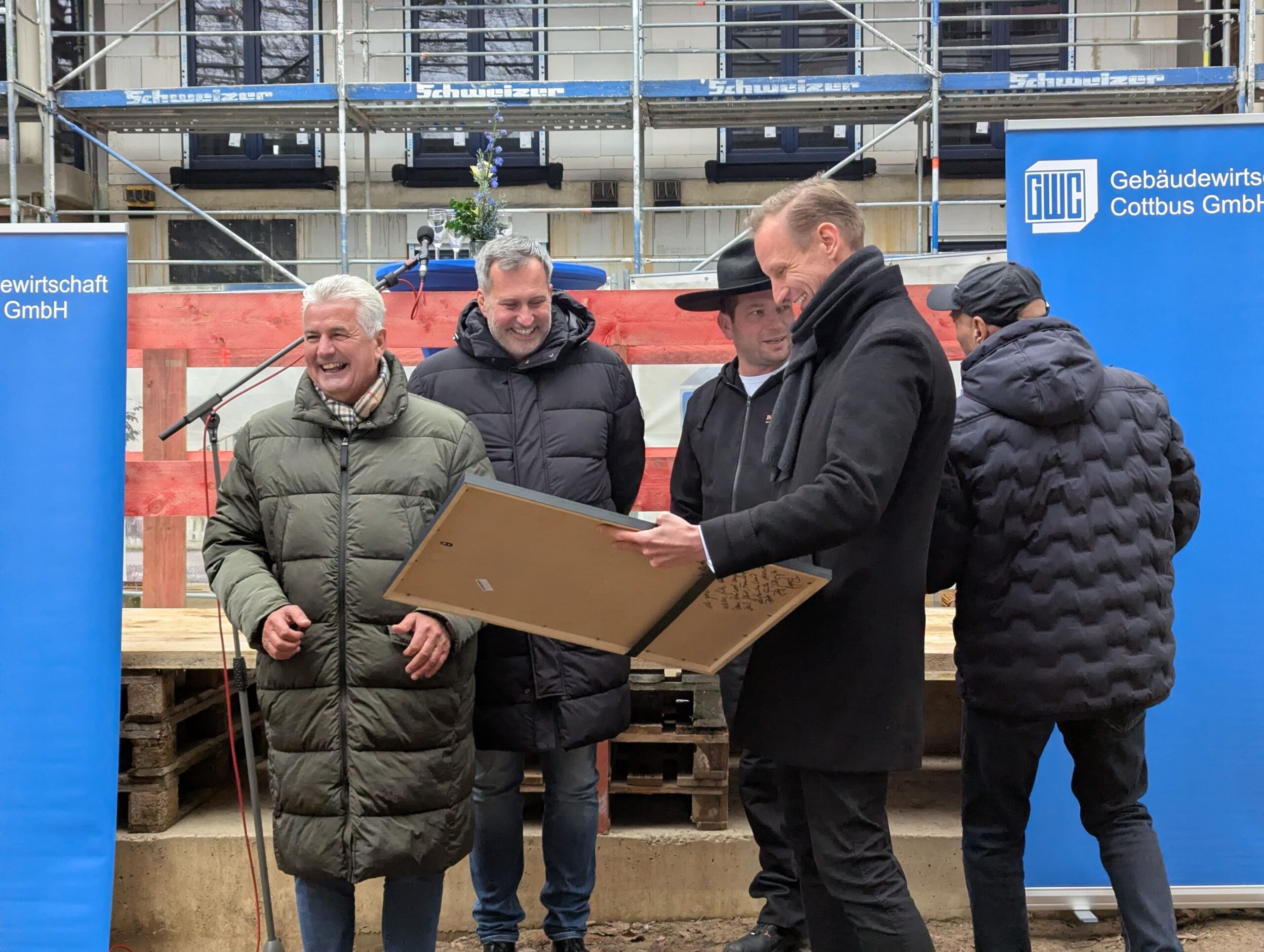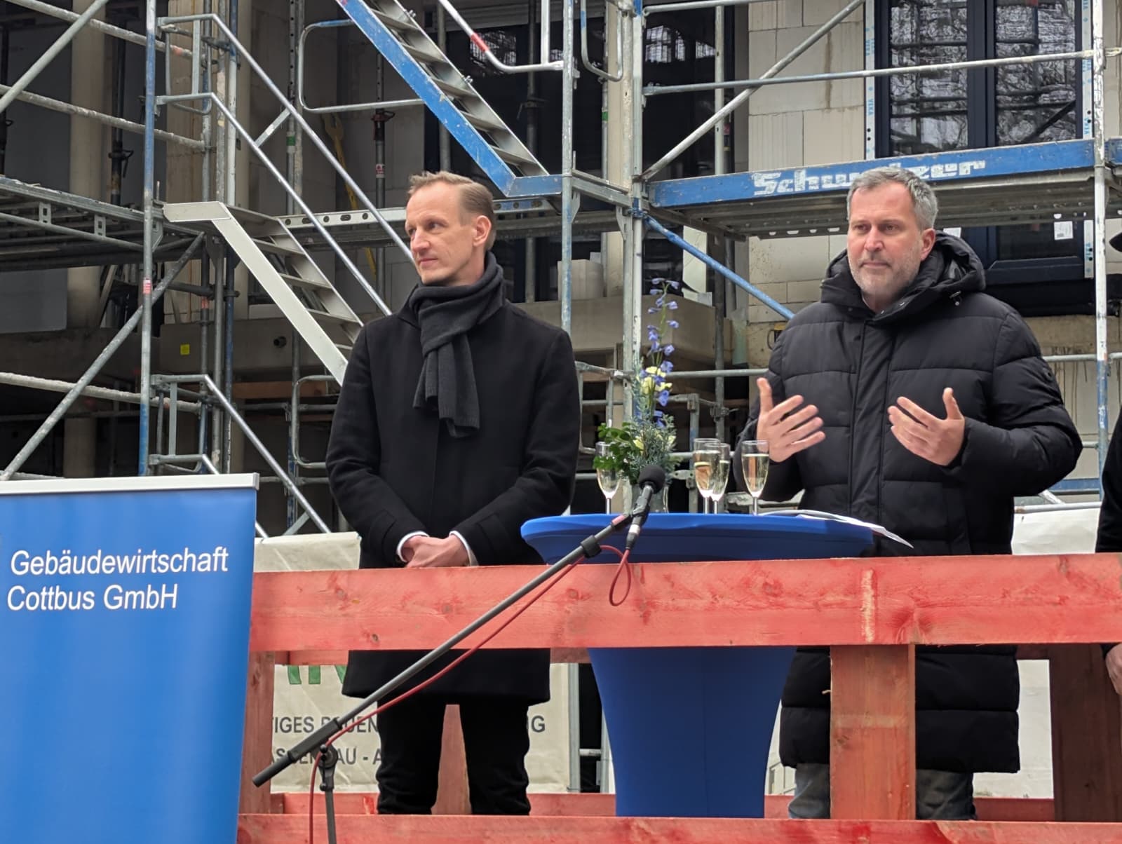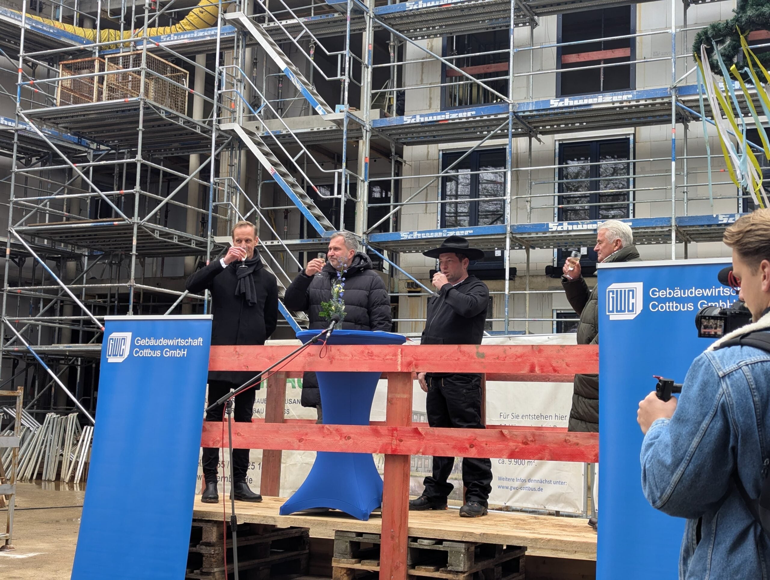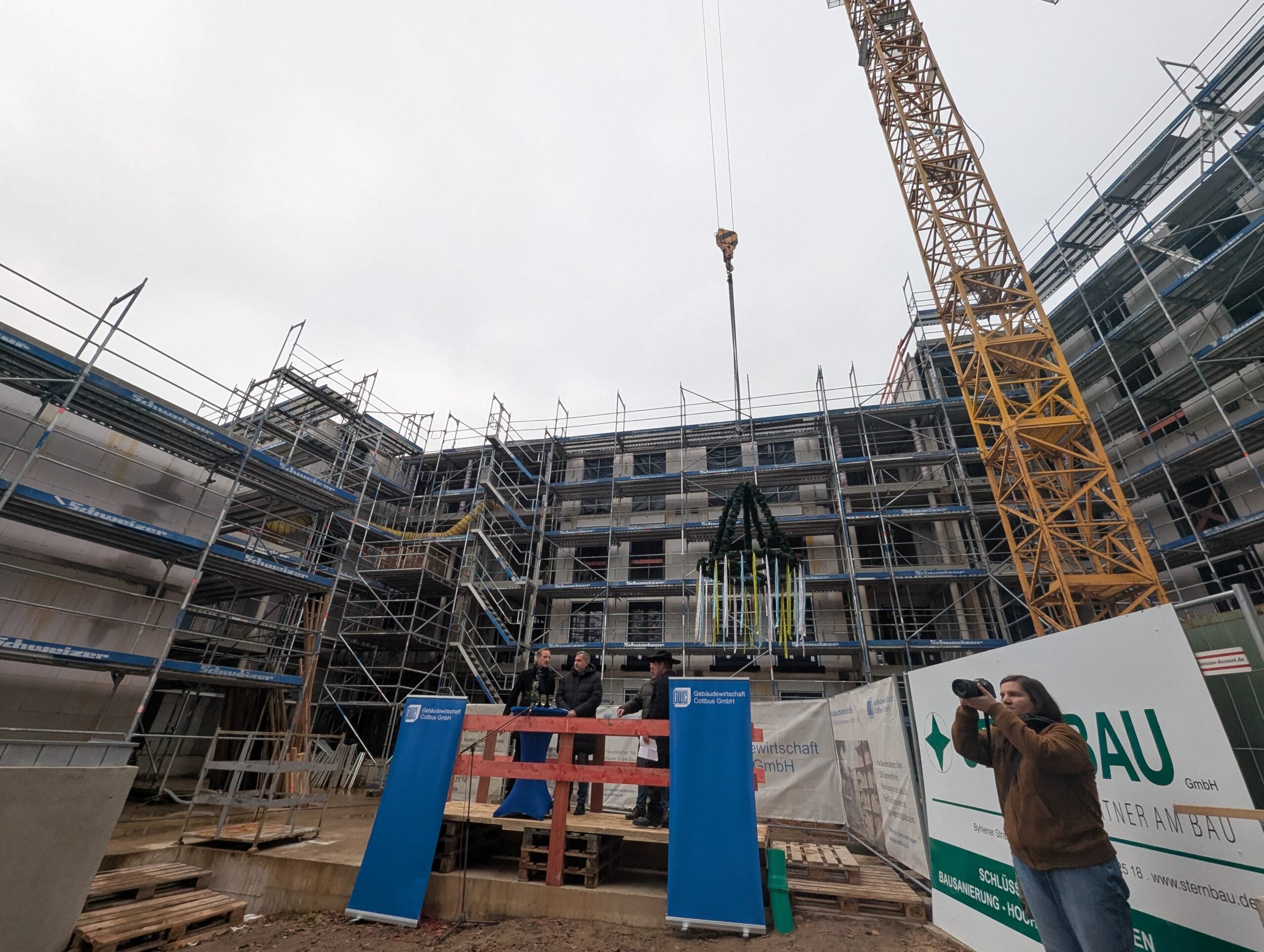 Die Gebäudewirtschaft Cottbus (GWC) hat am Dienstag das Richtfest für den ersten Bauabschnitt ihres umfangreichen Wohnungsneubaus an der Briesmannstraße gefeiert. Nach Unternehmensangaben verläuft das Projekt planmäßig. Geschäftsführer Dr. Sebastian Herke zeigte sich zufrieden mit dem Baufortschritt und betonte die Bedeutung des Vorhabens für den Cottbuser Wohnungsmarkt.
