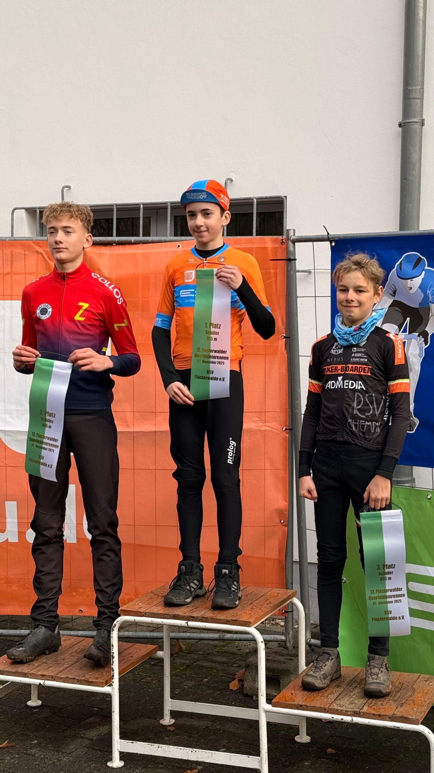 In der Altersklasse U15 Jungen konnte sich Leon Walczak trotz eines Sturzes in der letzten Kurve mit beeindruckendem Vorsprung durchsetzen und gewann das Rennen. Er sicherte sich damit den Titel des Landesmeisters im Cyclocross. Leon Walczak ist seit frühester Kindheit im Cyclocross aktiv und trainiert regelmäßig in der Madlower Schlucht. Mit dem Titel setzt er eine Familientradition fort: Sowohl sein Vater als auch sein Großvater waren in dieser Sportart erfolgreich.