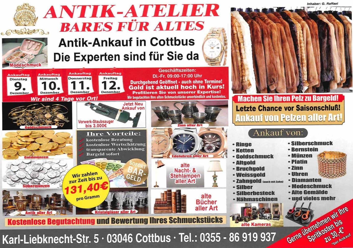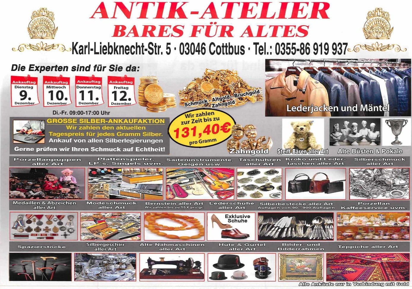 Mitarbeitende der Stadtverwaltung haben in der Karl-Liebknecht-Straße in Cottbus einen illegalen Goldankauf im Wege des Sofortvollzuges unterbunden. Wie aus der Mitteilung hervorgeht, warnt die Stadt in diesem Zusammenhang ausdrücklich davor, Werbeflyern der gezeigten Art ungeprüft zu vertrauen.