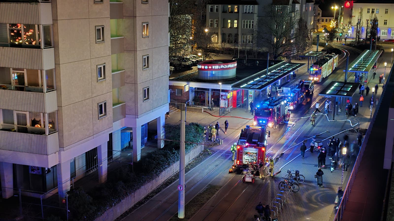 Cottbus: Ein Kellerbrand hat am Donnerstagnachmittag für einen Großeinsatz der Feuerwehr gesorgt. Da der Brandort am Turm und damit mitten im Weihnachtsmarkt lag, mussten zahlreiche Besucher umgeleitet und der Straßenbahnverkehr unterbrochen werden. Verletzt wurde niemand und nach einer halben Stunde war das Feuer aus. Nach bisheriger Erkenntnis hatten Akkus gebrannt. Die Ermittlungen dauern an, der Sachschaden beträgt nach ersten Schätzungen mehrere tausend Euro.
