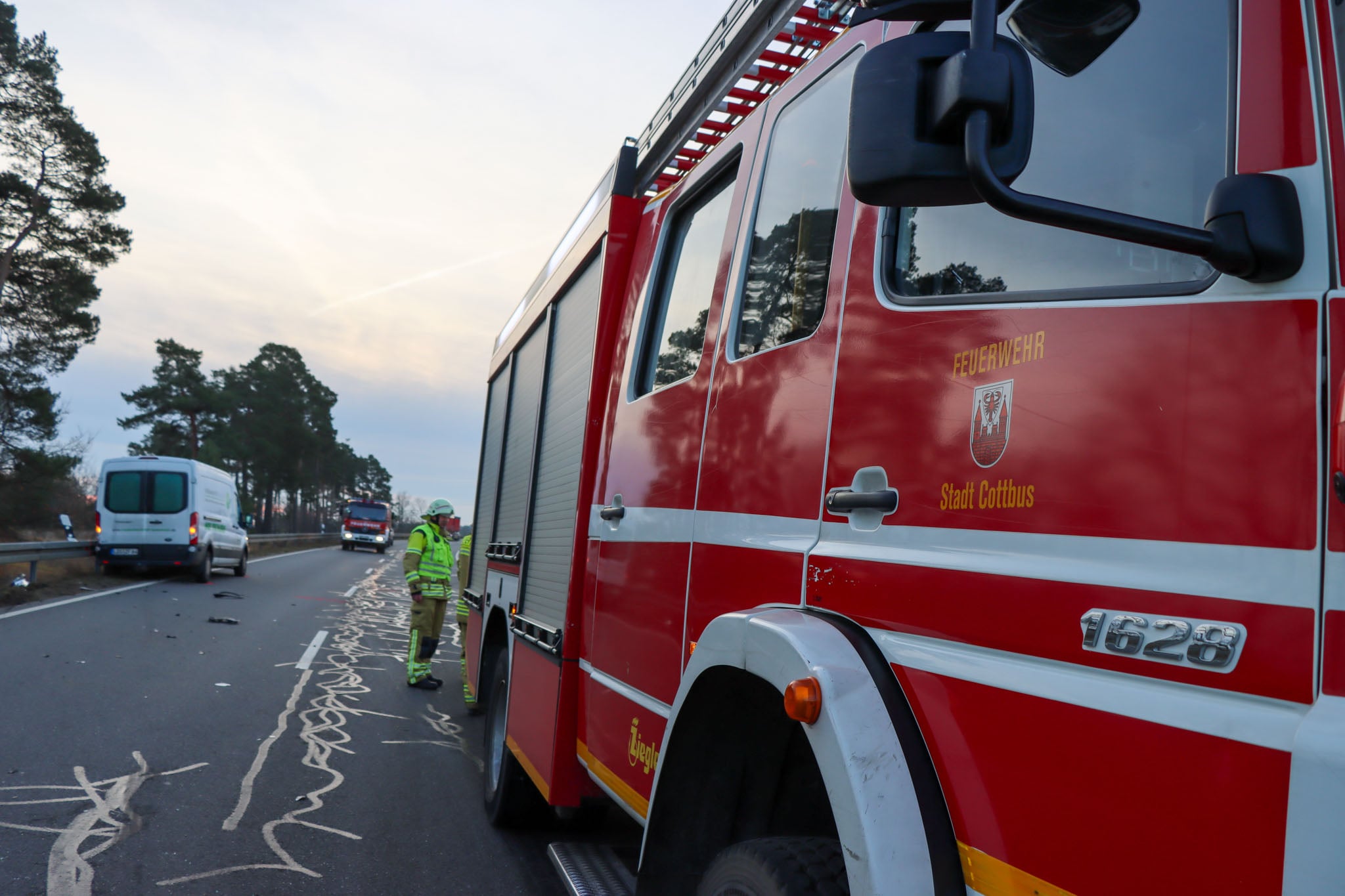 Auf der Bundesstraße 168 bei Cottbus sind am heutigen Dienstagmorgen mehrere Menschen bei einem Verkehrsunfall verletzt worden. Wie die Polizei mitteilte, kam es kurz vor 7:30 Uhr unweit des Abzweiges nach Merzdorf auf Höhe des Aussichtsturmes zu einem Zusammenstoß mehrerer Fahrzeuge, ausgelöst wohl durch eine Unaufmerksamkeit beim Überholen. In der Folge kam es zu einer seitlich versetzten Frontalkollision mit einem entgegenkommenden Lastkraftwagen sowie weiteren Kollisionen mit nachfolgenden Fahrzeugen. Drei Fahrzeugführer und ein Beifahrer im Alter zwischen 24 und 62 Jahren erlitten Verletzungen und wurden in umliegende Krankenhäuser gebracht. Der Sachschaden beläuft sich nach ersten Schätzungen auf rund 200.000 Euro, alle beteiligten Fahrzeuge mussten abgeschleppt werden. Zur Absicherung des Rettungseinsatzes war die Bundesstraße bis etwa 10:30 Uhr voll gesperrt, was zu Verkehrsbehinderungen führte.