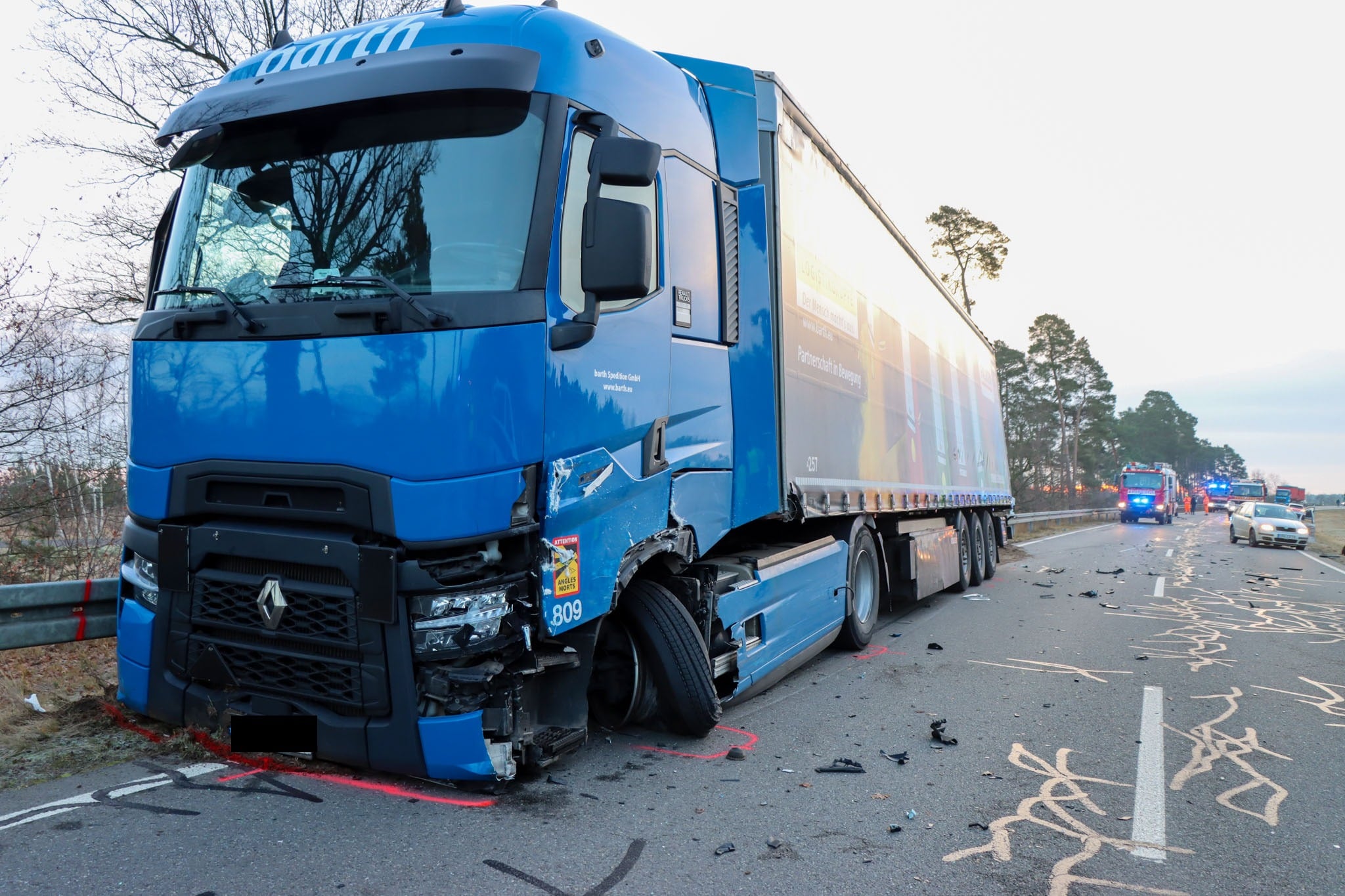 Wie die Polizei mitteilte, wurden Rettungsdienst, Feuerwehr und Polizei am Dienstag kurz vor 07:30 Uhr zu einem Verkehrsunfall auf die Bundesstraße 168 gerufen. Der Unfall ereignete sich unweit des Abzweiges nach Merzdorf auf Höhe des Aussichtsturmes. Nach bisherigen Ermittlungen war ein PKW nach einer Unaufmerksamkeit beim Überholen eines Transporters Auslöser des Unfalls. In der Folge kam es zu einer seitlich versetzten Frontalkollision mit einem entgegenkommenden LKW sowie einem weiteren Transporter.