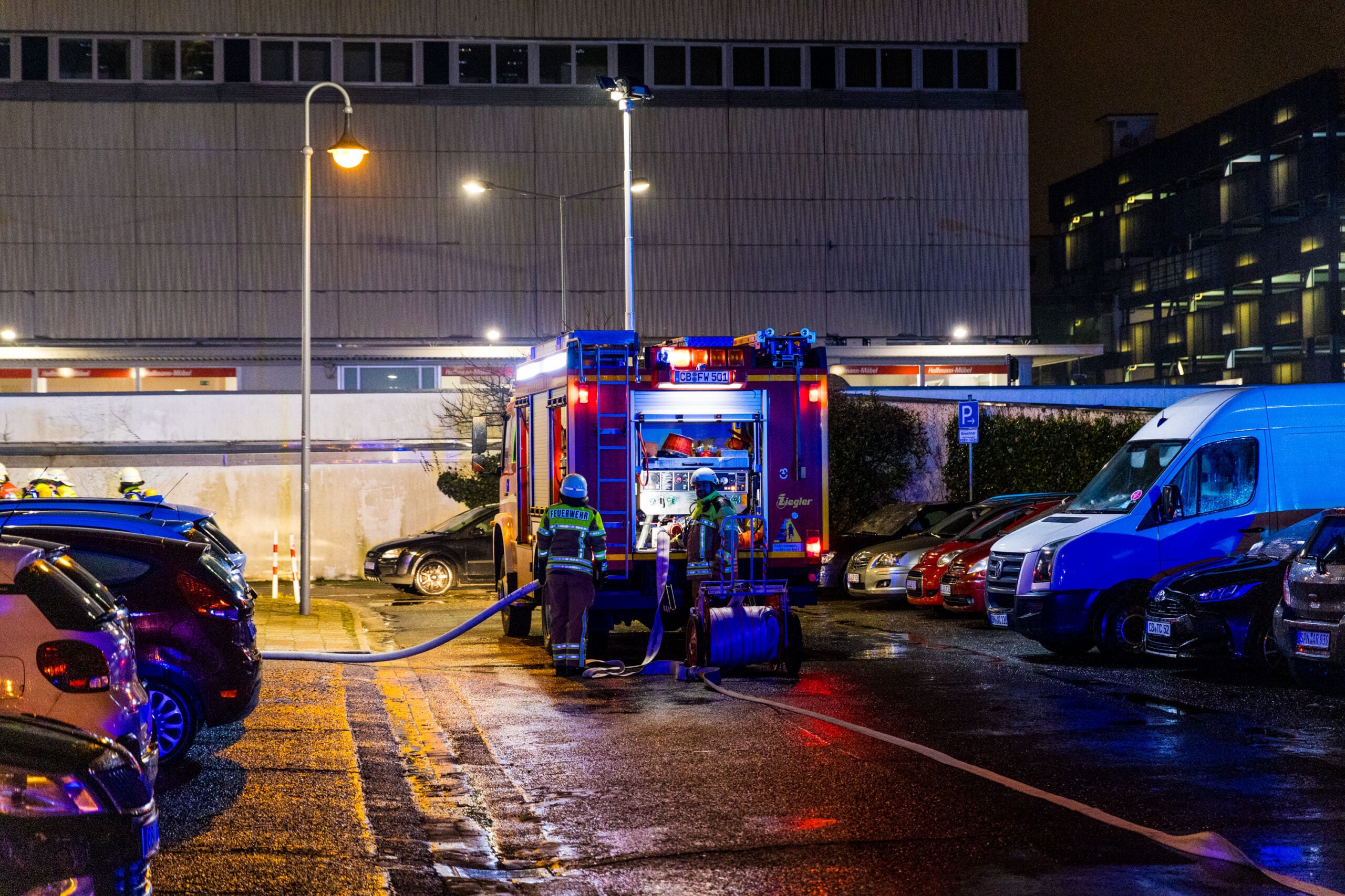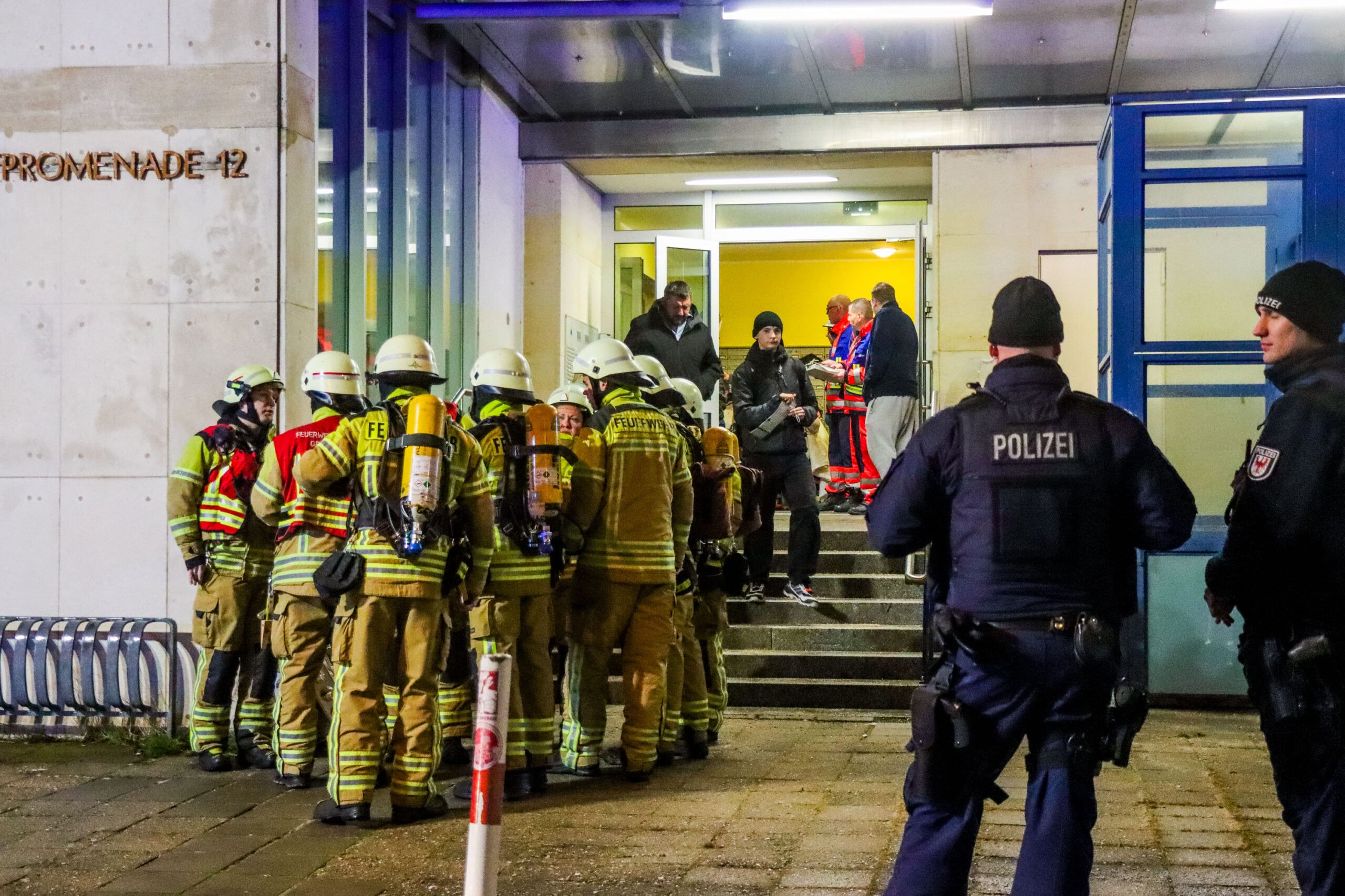 Aufgrund der ersten Notrufe alarmierte die Leitstelle die Feuerwehr zunächst mit dem Stichwort „Gebäude groß“. Nach der ersten Lageerkundung erhöhten die Einsatzkräfte das Alarmstichwort auf MANV, einen Massenanfall von Verletzten. Hintergrund war die Vielzahl der im Gebäude befindlichen Personen sowie die starke Rauchentwicklung, die sich über mehrere Bereiche des Hauses ausbreitete.