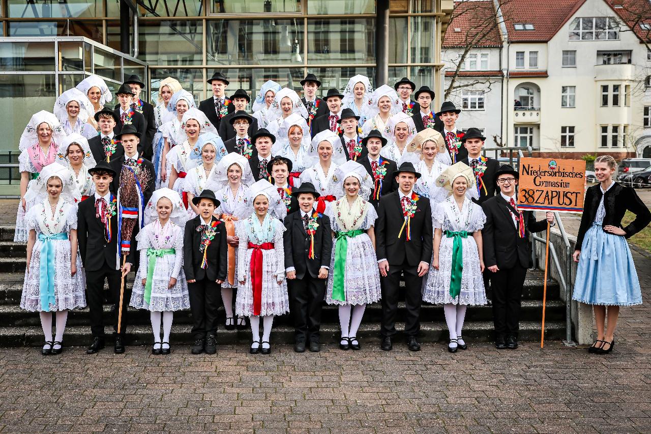 Für die Schülerinnen und Schüler der 12. Klassen des Niedersorbischen Gymnasiums Cottbus ist der Zapust ein besonderer Moment im Abschlussjahr. Bevor die intensive Vorbereitungsphase auf die Abiturprüfungen beginnt, wird mit Musik, Tanz und fröhlicher Stimmung der Winter ausgetrieben. Der Zapust ist einer der bekanntesten und beliebtesten Bräuche der Lausitz und wird traditionell auch in den Dörfern der Niederlausitz gefeiert.