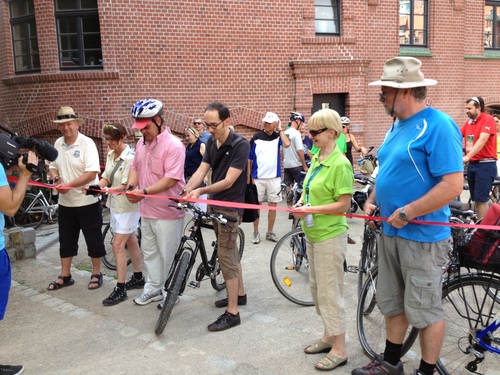 Pünktlich zum Bundesradsporttreffen 2013 wurde heute der Lausitzer Energie-Radweg mit der Route in Cottbus erweitert. Marietta Tzschoppe, Beigeordnete für Bauwesen der Stadt Cottbus, würdigte den Ansatz der Energieregion Lausitz über die „Landfenster“ Einblicke zu Energieprojekten zu geben. Gemeinsam mit dem Oberbürgermeister Frank Szymanski, Norman Müller (Geschäftsführer Energieregion Lausitz-Spreewald GmbH, Klaus Schwarz (Landschaftspflegeverband Spree-Neiße e.V.), Heike Schumann (Öffentlichkeitsarbeit Stadtwerke Cottbus) und Olaf Schöpe (Geschäftsführer Waldhotel Cottbus) gab sie die Strecke für die Radfahrer frei. Danach wurden die verschiedenen Landfenster-Stationen genutzt, um sich über die Projekte kundig zu machen.