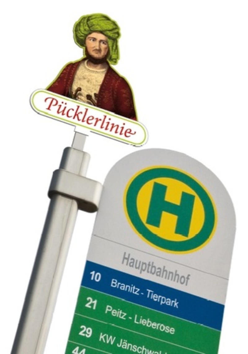 Eine weitere Besonderheit ist die Pücklerlinie (Buslinie 10), die am Hauptbahnhof startet und im Rundkurs über Branitz zahlreiche Sehenswürdigkeiten anfährt. Alle touristisch wichtigen Haltestellen sind eigens mit dem Kopf Pücklers gekennzeichnet, sodass jeder Fahrgast erkennt, wenn er sich „auf den Spuren Pücklers“ befindet.