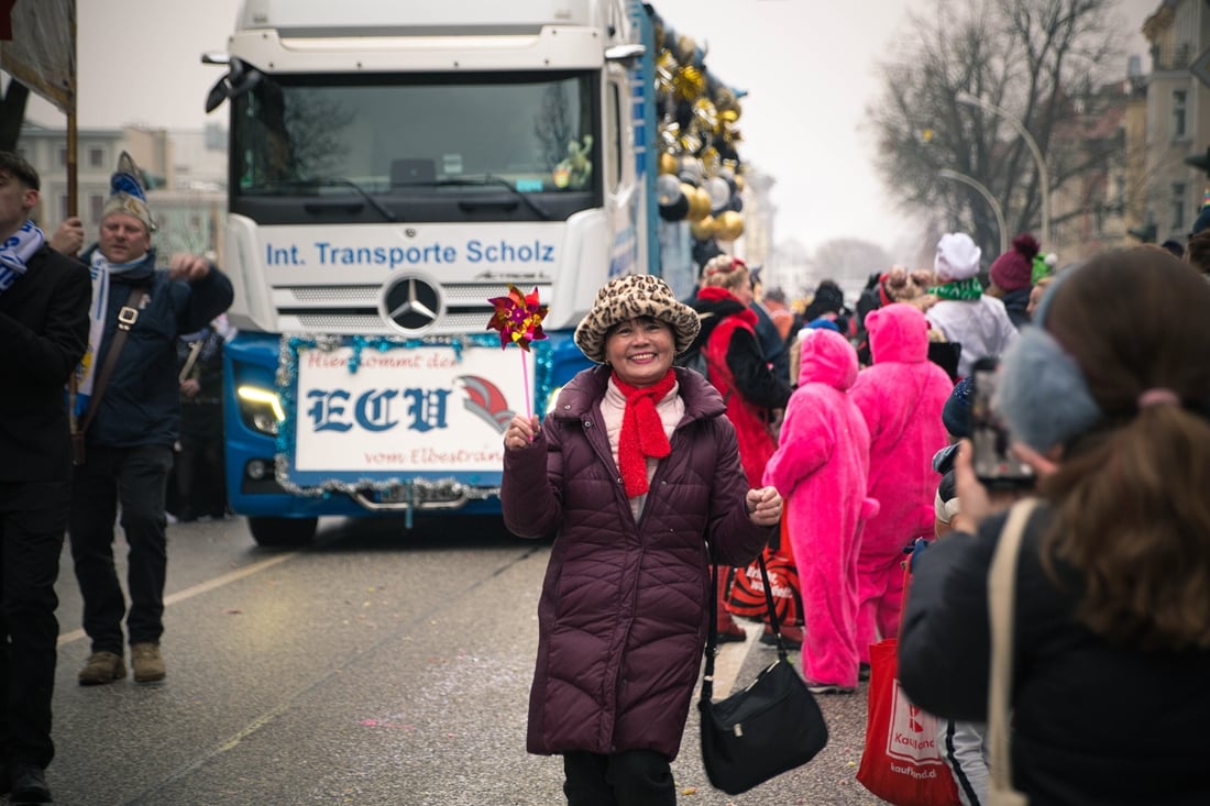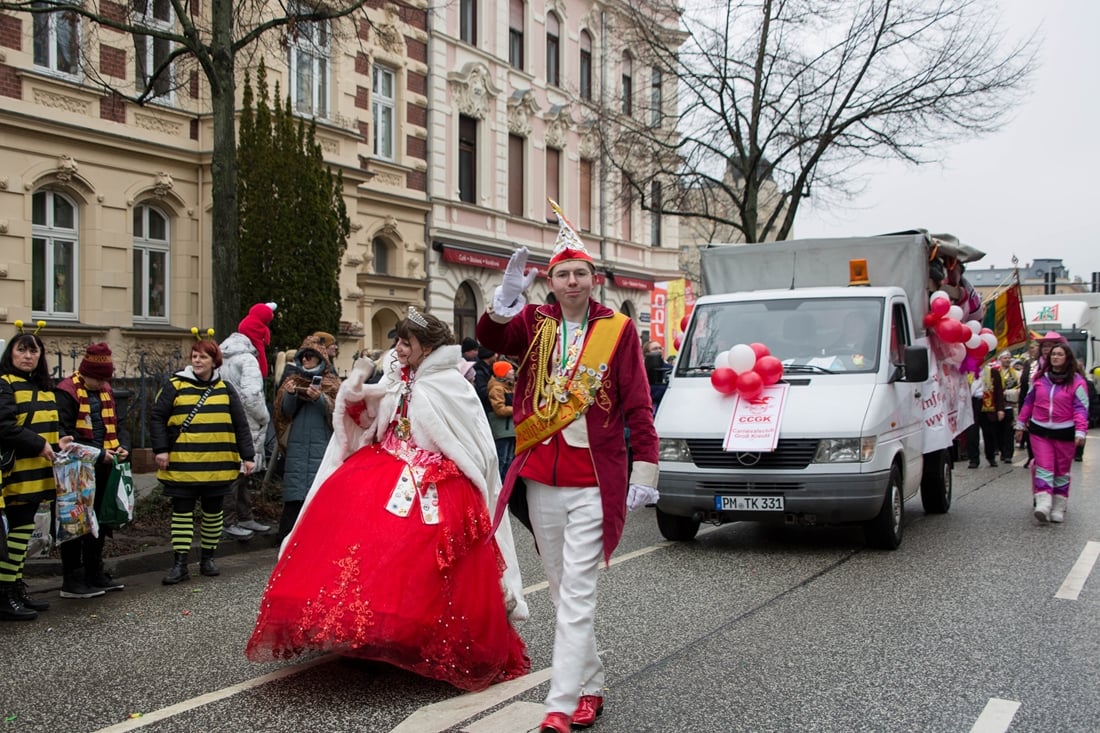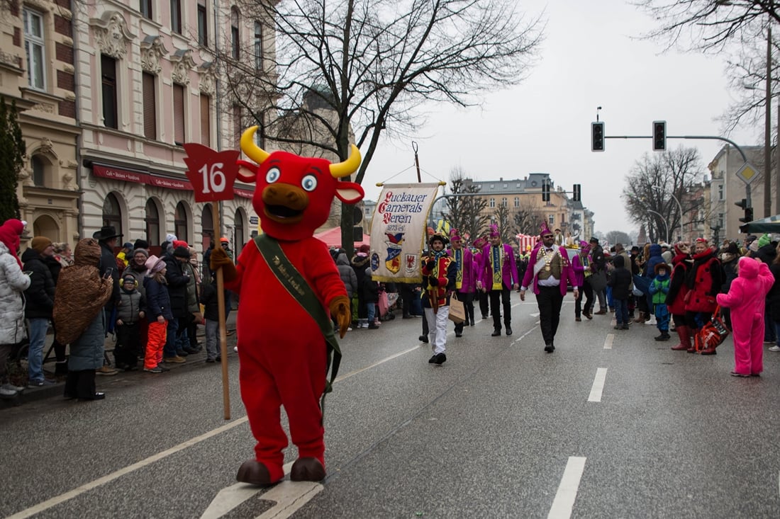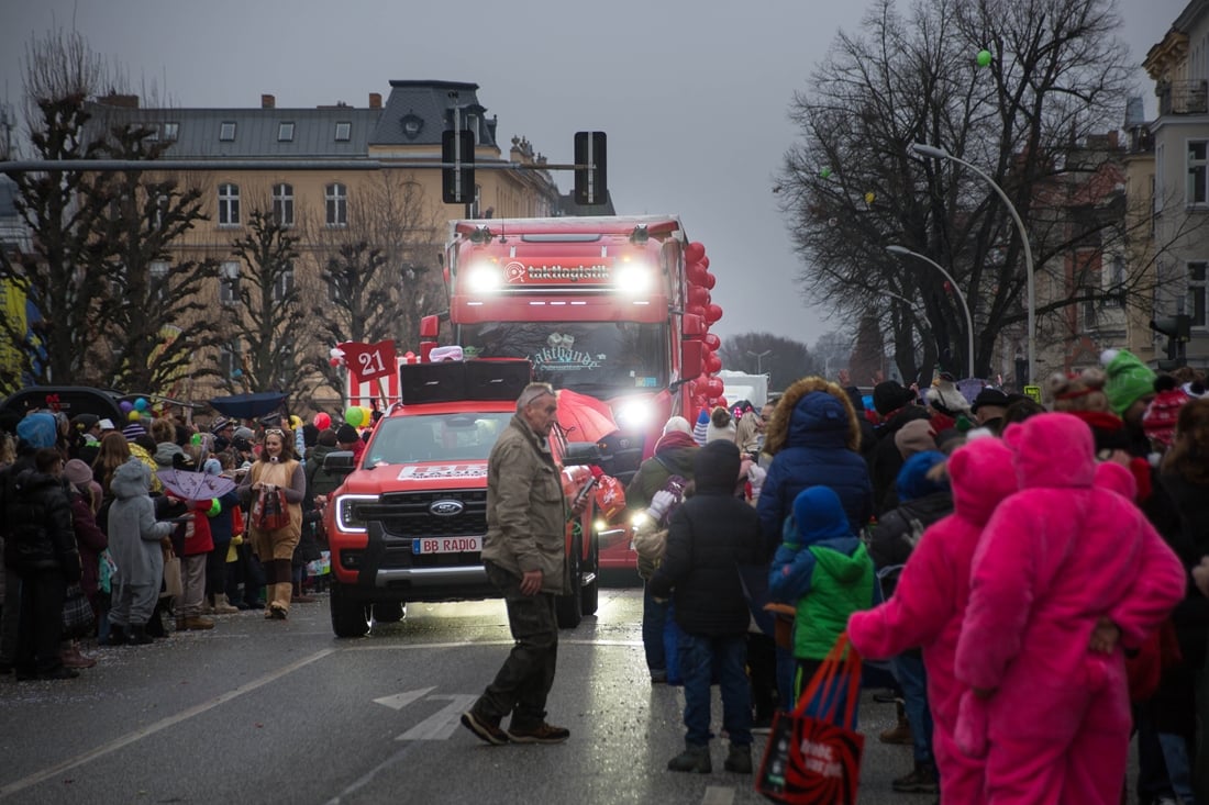 Die Stimmung während des Umzugs war ausgelassen. „Bei uns ist die Stimmung super. Was hier wieder los ist in Cottbus dieses Jahr, ist der Hammer. Einfach nur gut, dass sich das Wetter hält.“, hieß es mitten im Trubel. Viele Karnevalistinnen und Karnevalisten sprachen auch über die Vorbereitung auf die Session. „Wir trainieren tatsächlich die ganze Saison immer und immer wieder und freuen uns heute dabei zu sein“, sagte eine Tanzgruppe. Ein anderer Verein ergänzte: „Wir fangen im September mit den Trainingseinheiten an und freuen uns dann so darauf, dass wir die Wochenenden wirklich durchziehen können.“ Der „Zug der fröhlichen Leute“ ist auch über die Region hinaus ein fester Termin. „Wir haben Gäste aus Florida, wir haben Gäste aus Luxemburg und wir haben unsere Gäste aus Braunschweig“, berichtete eine Gruppe. Die Rückmeldungen seien eindeutig: „Die sind alle begeistert und froh, dass sie hier sein dürfen.“ Viele Teilnehmende fassten den Karnevalssonntag schlicht zusammen. „Wetter ist super, Stimmung ist super, alles ist super.“ Oder kurz und knapp: „Gute Menschen, gute Leute, gute Stimmung.“ Auf dem Viehmarkt folgte im Anschluss die rgoße Karnevalsparty im Festzelt bis in die Nachtstunden.