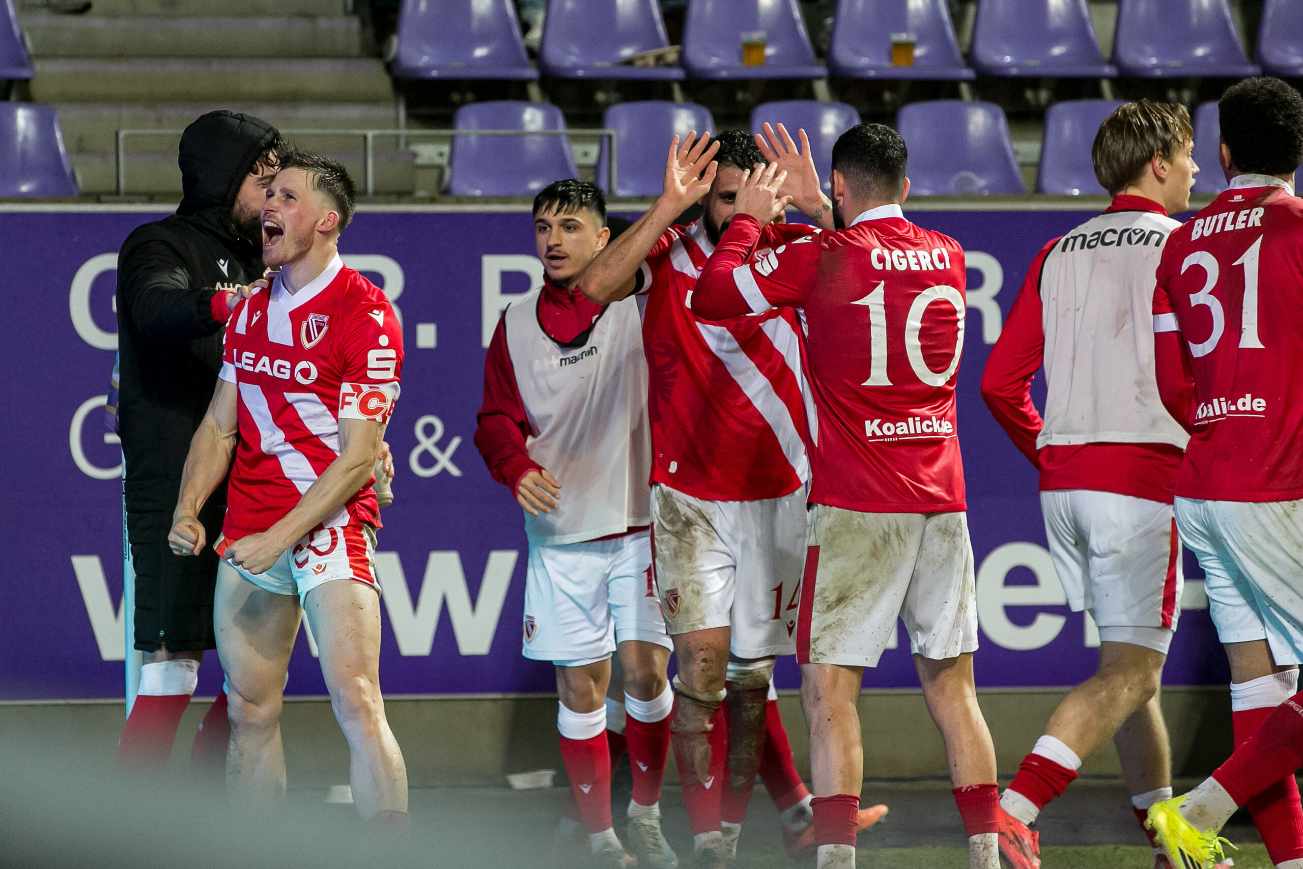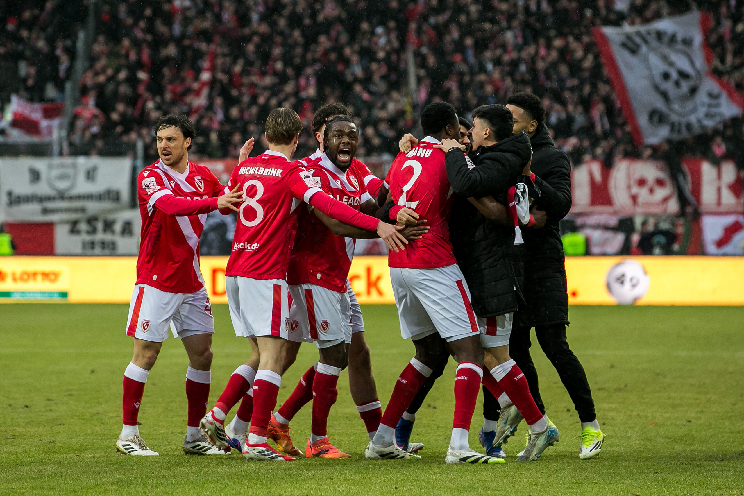 Dann die 87. Minute: Nach einem Freistoß von Tolcay Cigerci kam der Ball über Tolga Cigerci zu Kapitän Axel Borgmann, der den Ball über die Linie drückte. Der späte 2:1-Siegtreffer – und die erneute Tabellenführung für Energie Cottbus!