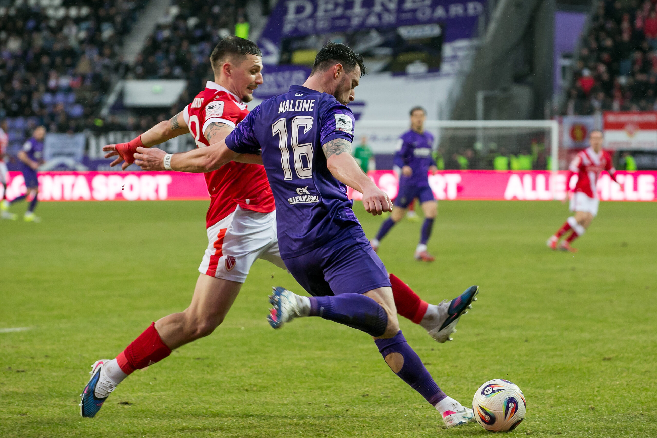 Der FC Energie Cottbus bezwingt Erzgebirge Aue mit 2:1 und holt drei wichtige Auswärtspunkte! Nach dem frühen Rückstand durch Marcel Bär (5.) glich King Manu per Kopf (12.) aus. Nachdem die zweite Halbzeit zunächst aufgrund eines Platzsturms längere Zeit unterbrochen war, sorgte Axel Borgmann in der 87. Minute nach einem Freistoß für die Entscheidung zugunsten der Lausitzer. Energie Cottbus verteidigt die Tabellenführung der 3. Liga damit erneut.