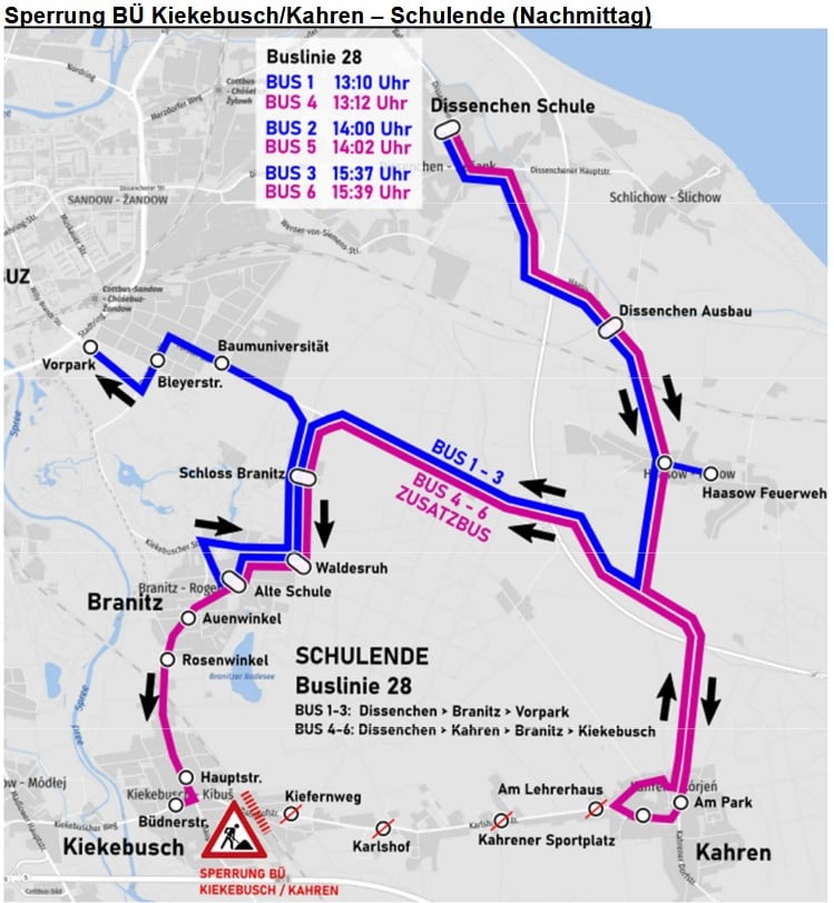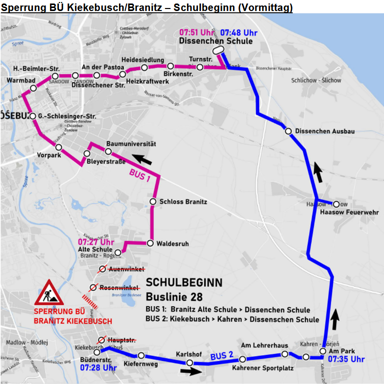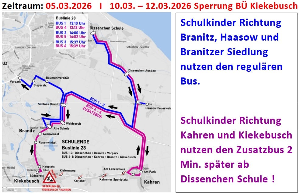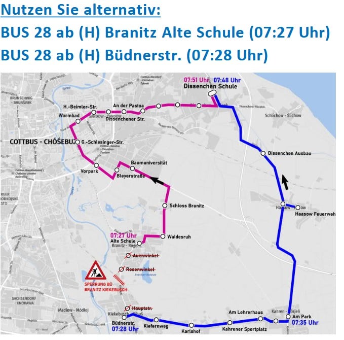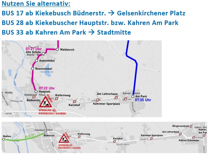 Für den öffentlichen Nahverkehr ergeben sich laut Stadt Fahrplananpassungen und einzelne Ausfälle. Auch der Schulbusverkehr ist betroffen. Cottbusverkehr bemühe sich, so viele Angebote wie möglich aufrechtzuerhalten. Fahrgäste werden gebeten, die Aushänge an den Haltestellen sowie die aktuellen Informationen im Internet zu beachten.