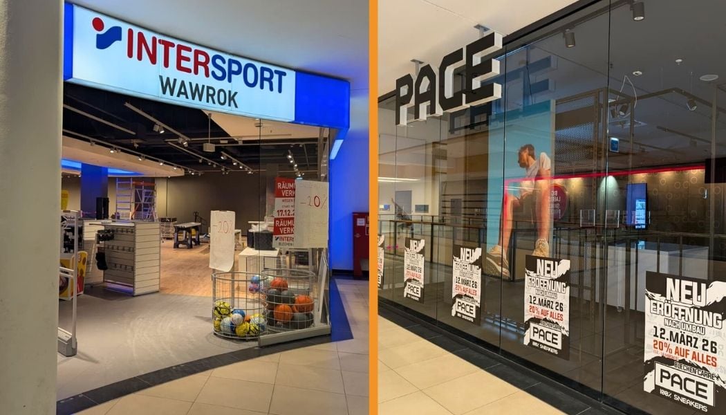 Im Einkaufszentrum Blechen Carré in Cottbus investiert die Sport Wawrok GmbH in zwei ihrer Geschäfte. Sowohl der Sportfachhändler Intersport Wawrok als auch der Sneakerstore Pace werden derzeit erweitert und modernisiert. Ziel soll es sein, die Verkaufsflächen zu vergrößern und das Sortiment auszubauen. Während Pace bereits am Donnerstag wieder öffnen soll, folgt die Neueröffnung von Intersport Ende März. Das Unternehmen setzt damit den Angaben zufolge ein klares Signal für den stationären Handel in der Cottbuser Innenstadt.
