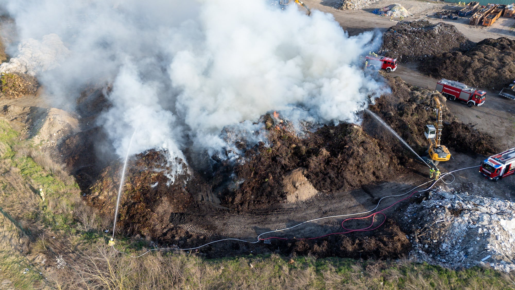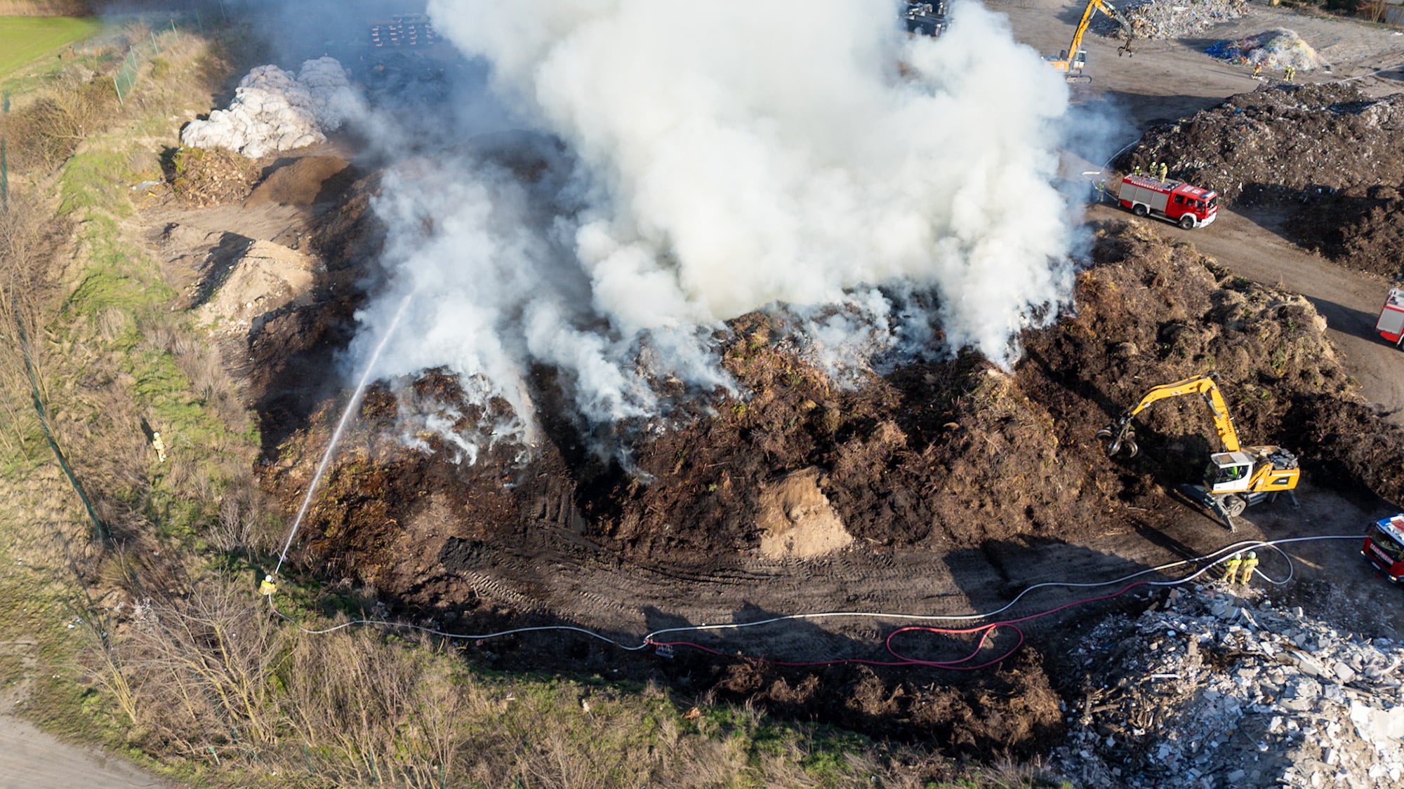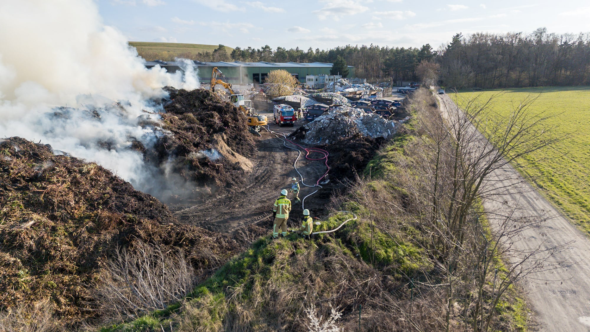 Besonders herausfordernd war die Beschaffenheit des brennenden Materials: Verdichtete Abfallhaufen lassen sich von außen kaum vollständig durchdringen. Die betroffene Recyclingfirma unterstützte die Einsatzkräfte daher mit dem Einsatz schwerer Geräte, mit denen die Haufen auseinandergezogen und gezielt abgelöscht werden konnten.