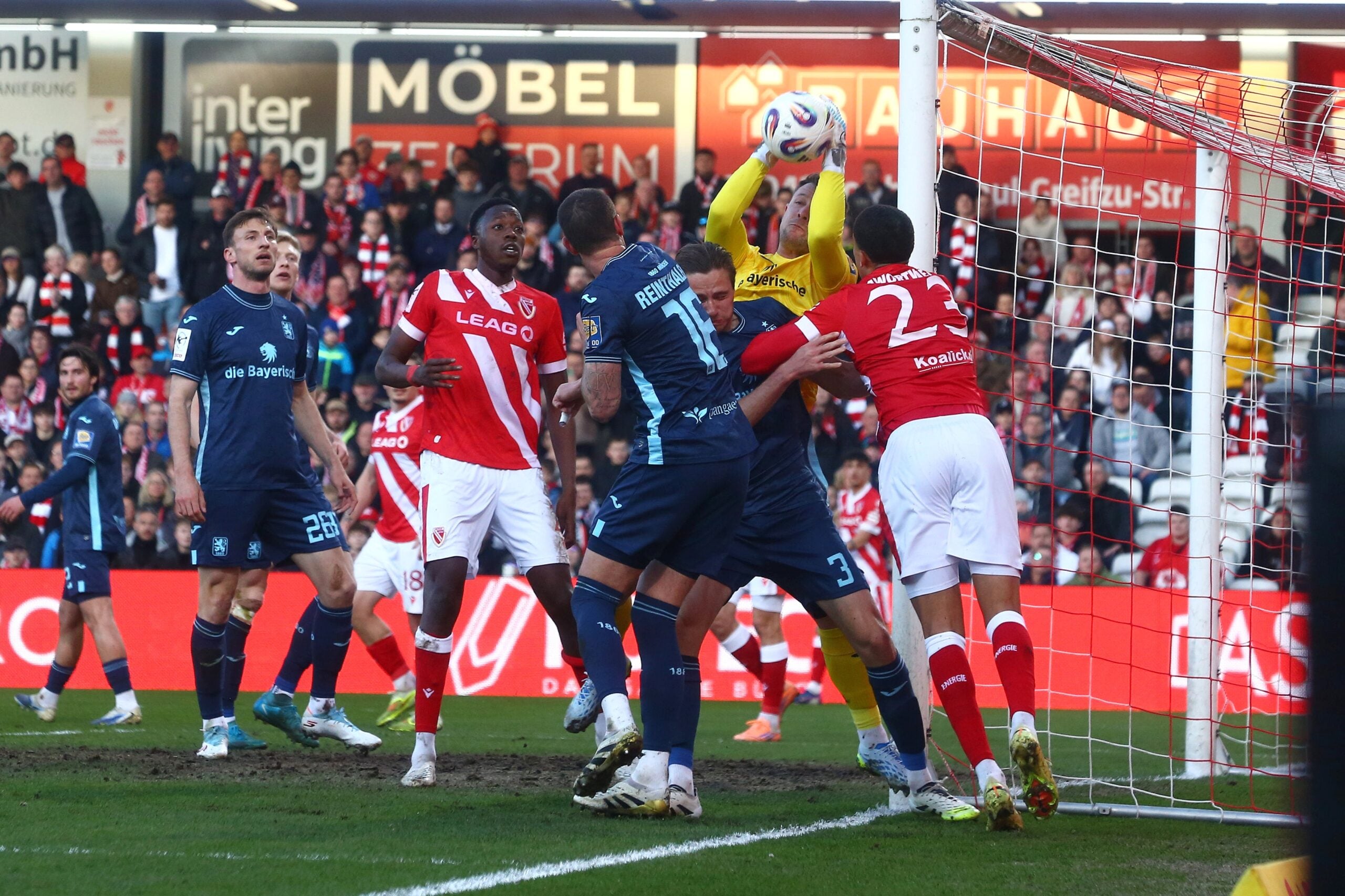 Auch im zweiten Durchgang blieb Energie die tonangebende Mannschaft. Die Gastgeber hielten das Tempo hoch und ließen den Ball sicher durch die eigenen Reihen laufen, während 1860 München kaum Mittel fand, um gefährlich vor das Tor von Marius Funk zu kommen.