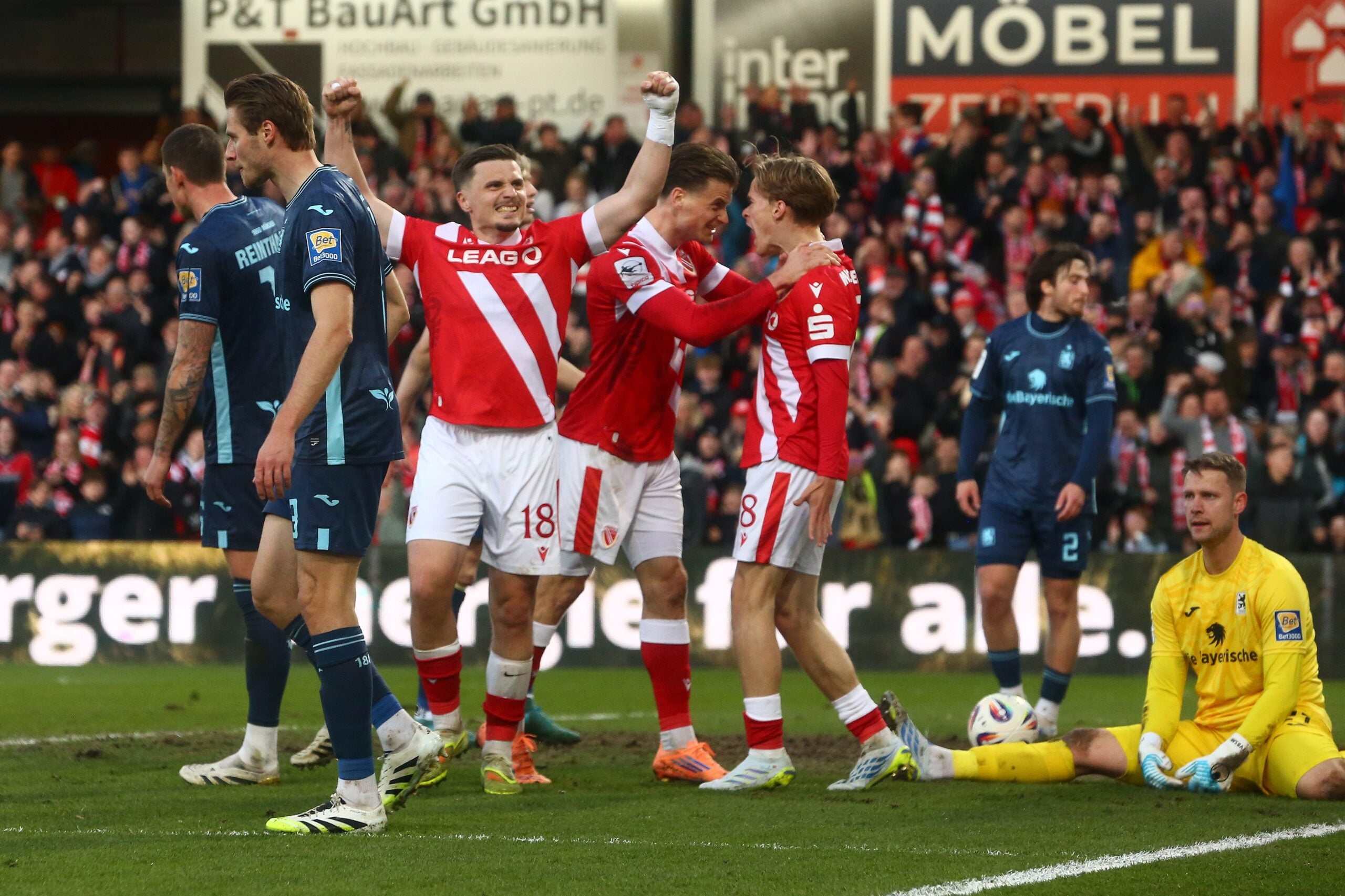 Der FC Energie Cottbus hat auch im zweiten Spiel der Englischen Woche einen souveränen Sieg eingefahren! Gegen den TSV 1860 München setzten sich die Lausitzer am Dienstagabend vor über 16.200 Zuschauern mit 3:0 durch. Erik Engelhardt brachte Energie in der 29. Minute per Kopf in Führung und legte nur vier Minuten später das 2:0 nach. In der 66. Minute schnürte der Angreifer sogar einen Dreierpack und sorgte frühzeitig für die Entscheidung im Flutlichtspiel. Durch den Sieg von RW Essen im Parallelspiel bleibt Energie bis zum absoluten Topspiel am Sonntag gegen Spitzenreiter Osnabrück auf Tabellenplatz drei.