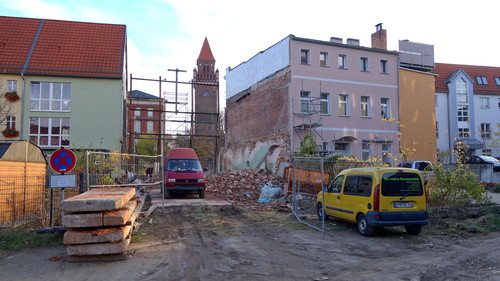 Seit vielen Jahren stand dort nur noch die Fassade, zum Schutz der Passanten gestützt durch eine Metallkonstruktion. Ein originalgetreuer Aufbau des Hauses war offenbar wirtschaftlich nicht zu vertreten. Es bleibt zu hoffen, dass der Eigentümer nunmehr diese Lücke schnellstmöglich mit einem dem Standort angepassten Baukörper schließen lässt.