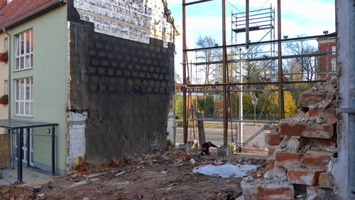 Abriss des Wohn- und Geschäftshauses Sandower Straße 13