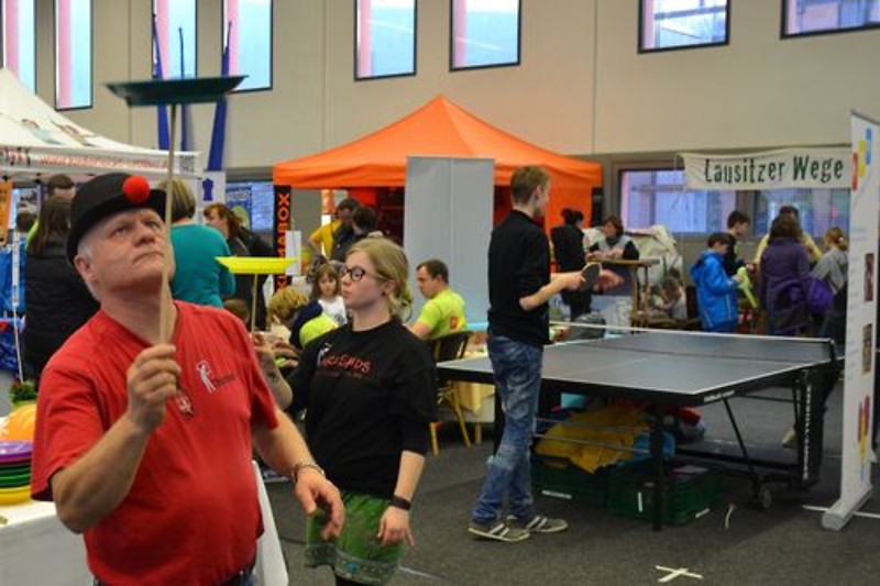Bereits eine Stunde vor Ende der Veranstaltung waren die Veranstalter höchst zufrieden. „Etwa 2.000 Besucher hatten wir seit heute 10 Uhr.“ sagt Jens Taschenberger. „Mit der Hälfte hatten wir gerechnet und den Ausstellern mitgeteilt.“ Es war aber keine reine Infomesse mit Broschüren, sondern die Kinder waren zum aktiven Mitmachen, Staunen und Lernen eingeladen. Von der klassischen Hüpfburg über Tellerjongleure, Kinderschminken, Informationen über alte Lebensweisen und Curling konnten sich die Kinder austoben. Tagesangebote wechselten sich mit regionalen Vereinen und mehrtägigen Ferienlageraufenthalten ab. Insgesamt waren 30 Aussteller gekommen.