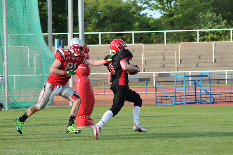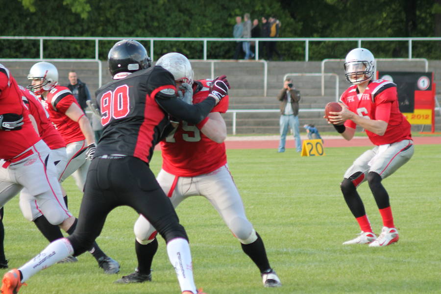 Headcoach Jörg Steudtner schätzt nach dem Spiel die Situation wie folgt ein: ,,Im Spiel zweier gleichwertiger Mannschaften, haben wir die entscheidenden Fehler gemacht. In zwei Wochen, am 18.5. geht es zu den Bulldogs nach Spandau, bei denen unsere Abstimmungen in der Offense hoffentlich besser klappen.“