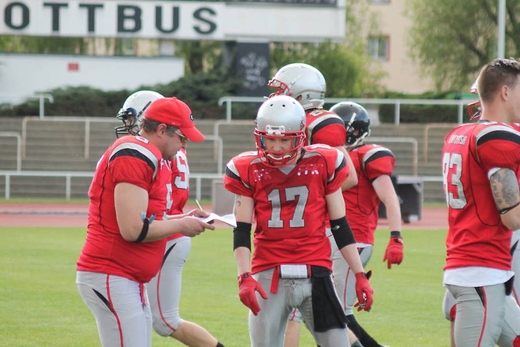 Mit einer Niederlage starten die Cottbus Crayfish in die Regionalligasaison. Am Ende hieß es 14:32 im Spiel gegen die Potsdam Royals. Dabei spiegelt das Ergebnis nicht den Spielverlauf wieder. Die neu zusammengestellte Mannschaft der Crayfish traf mit den Royals auf den erwartet starken Gegner. Zu Beginn sah es gut aus, die Verteidigung stoppte den ersten Angriff der Royals und in der ersten Angriffsserie der Crayfish gelang auch gleich der erste Touchdown der Saison. Die 7:0 Führung gelang durch Mathias Krakow nach einem Pass von Enrico Stiegemann. Dann begann allerdings Sand in das Getriebe der Krebse zu rieseln. Besonders der Angriff der Cottbuser fand nie zu seinem Spiel, Abstimmungsprobleme und einschleichende Fehler dominierten fortan. Auf der Gegenseite zeigten die Royals eine zwar nicht fehlerfreie aber solide Leistung in ihren Angriffen. Auch begünstigt durch einen Fehler der Crayfish gelang dem gegnerischen Team vor der Halbzeit der Ausgleich zum 7:7.