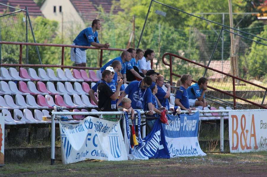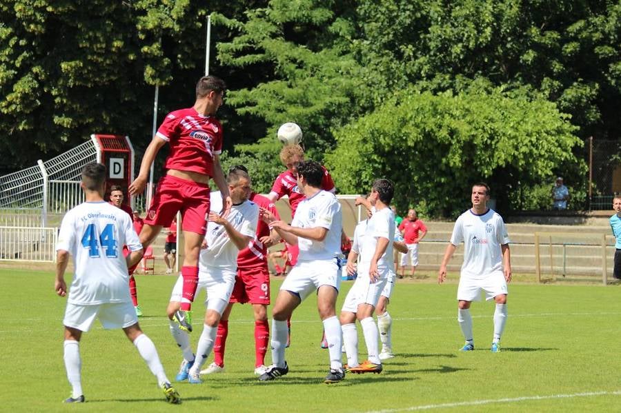 Das Spiel begann trotz der Hitze recht munter. Energie Cottbus hätte in der Anfangsphase durchaus in Führung gehen können. Gerstmann flankte über rechts in den Strafraum, wo Goslinowski aus Nahdistanz verpasste (8. Min.). Danach hatte auch Neugersdorf die Gelegenheit zur Führung. Lukáš zog aus der Drehung ab, verfehlte jedoch das Tor (15. Min.). Vier Minuten später versuchte es der Ex-Cottbuser Marrack. Doch das Glück blieb ihm vergönnt. Dieses hatten seine Mitspieler in der 30. Min., als Nezmar den Ball über links zu den im Strafraum stehenden Temel brachte. Dieser hatte keine Mühe zum 0:1 zu verwandeln. Das 0:2 sollte nicht lange auf sich warten. Dieses mal kam der FCO über die rechte Seite. Kunze brachte den Ball herein, dabei fand er in der Mitte Nezmar, der den Ball ohne Probleme in das Tor schob. Bis zur Halbzeit gab es auf beiden Seiten weitere Gelegenheiten, um Tore zu erzielen. jedoch blieb es bis zum Halbzeitpfiff beim 2:0 für die Gäste.