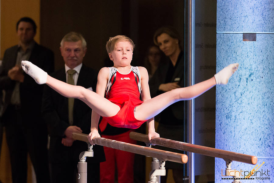 Der Saal der Sparkasse Spree-Neiße war gut gefüllt. Sportler und Trainer aus vielen Bereichen waren anwesend und erwarteten gespannt die Wahlen zum Sportler, der Sportlerin und der Mannschaft des Jahres in Cottbus. Werner Hanke zeigte mit über 70 noch, was im Alter möglich ist, wenn man sich fit hält. Manch Mitdreißiger hätte auf dem Barren nicht die Leistung zeigen können, die er zum Auftakt der Veranstaltung vorführte. Ihm gegenüber turnte ein zehnjähriger Juniorensportler des TV 1861 Cottbus als Spiegelbild der Generationen.