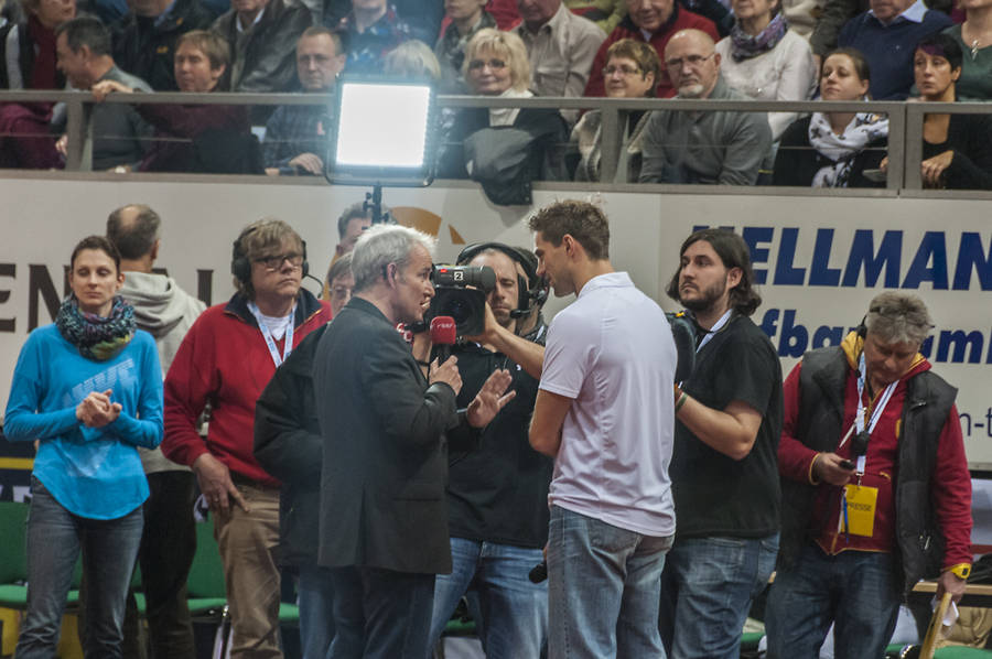 Bei der Vorstellung der jeweils neun Sportler in zwei Sektionen gab es ein wenig Traurigkeit, denn Björn Otto – als Publikumsliebling bei diesem Event, trat in seinem zivilen und sehr legeren Look auf. Er musste verletzungsbedingt, aufgrund eines Achillessehnenrisses, auf einen Start verzichten. Da aber die Chemie zwischen ihm und der Truppe um Meeting-Direktor Ulli Hobeck so gut ist, fungierte er als Kommentator. Er machte seine Sache für den Anfang recht gut, man könnte aber meinen, mit einem Stab in der Hand anstelle eines Mikrofons fühlt er sich einfach wohler. Aber schön, wenn man als Freund immer wieder willkommen ist. Auch privat hat er große Freude zu feiern, denn er bestand unlängst seine Pilotenausbildung. Da es auch ein Leben nach dem Sport gibt, kann man sich über diese neue Lebensentwicklung sehr freuen – unseren Glückwunsch auch hierzu.