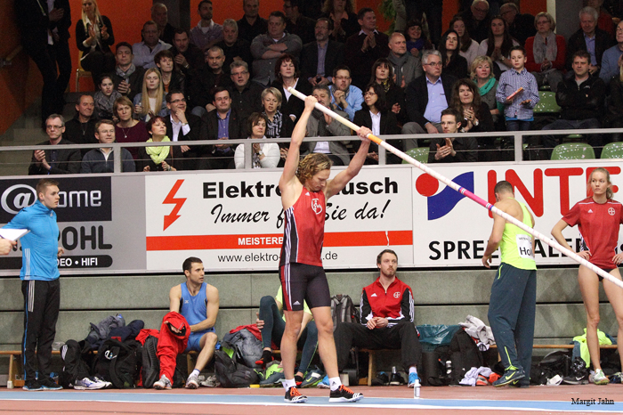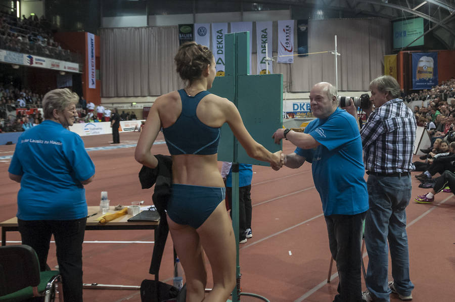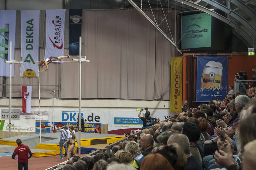 Vom 5-8. März findet in Prag die Hallen-EM statt. Ein Ticket dafür bekam in persönlicher Bestleistung Katarina Mögenburg, die Tochter des Olympiasiegers von 1984 Dietmar Mögenberg. 1,88m überwand sie dafür an der Hochsprungmatte. Isobell Pooley, der zweiten der Commonwealth Games 2014 gelang dies auch. Marie-Laurence Jungfleisch als beste deutsche Hochspringerin fehlte verletzungsbedingt, die aktuelle Weltmeisterin Svetlana Shokolina fehlte auch.Allen Teilnehmern unseren herzlichen Glückwunsch für die erbrachten Leistungen aber auch für den spannenden und unterhaltsamen Abend in der Cottbuser Lausitz-Arena.