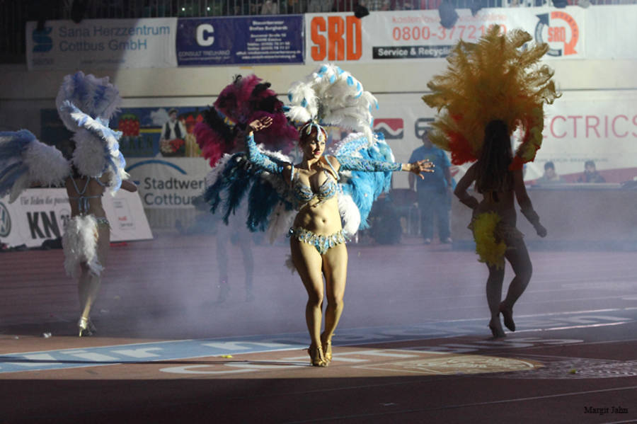 Nachdem die Cottbuser Sambaband Los Pepinos schon mal zu Beginn kräftig einheizten, gesellten sich noch die charmanten Sambatänzerinnen von Los Perolas hinzu. Ein alles in Allem sehr gelungener Auftakt.